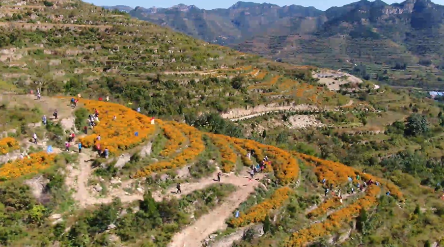 金秋时节,淄川区太河镇下端士村,山坡上的200多亩万寿菊绽放如锦,色彩浓烈奔放。在花丛中,笑容比花儿还灿烂的,是下端士村党支部书记肖玉爱。