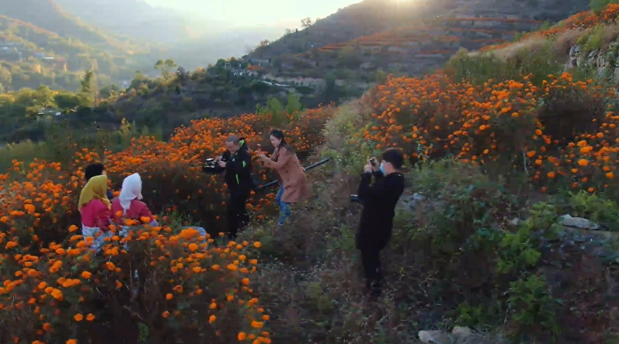 果香花艳,在肖玉爱的带领下,下端士村立足村情特色发展乡村旅游,打造景观花海、种植经济水果,带动了村民致富增收,昔日的穷山村,成了乡村旅游的网红打卡地。