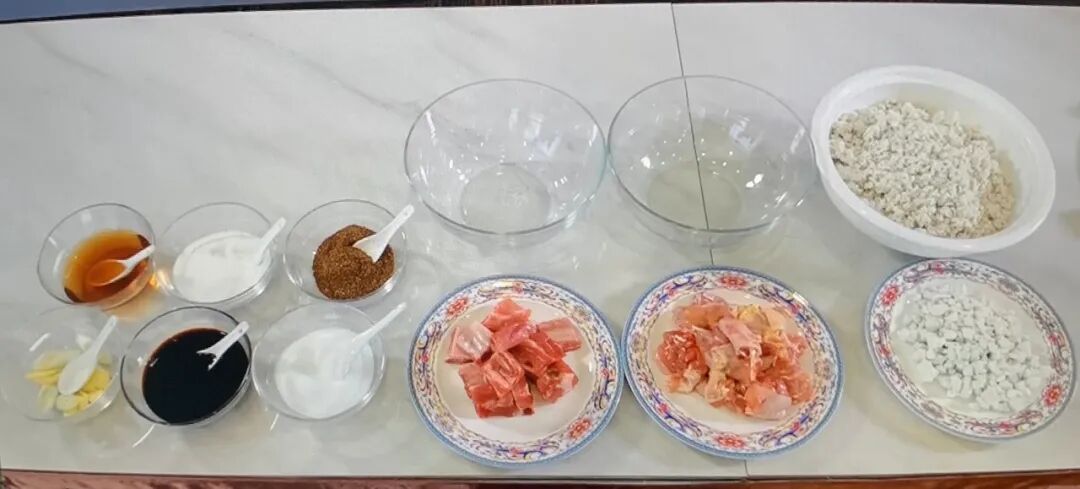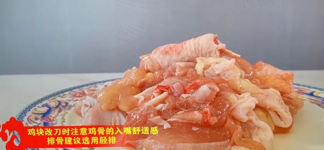 鸡在剁块的时候要一刀砍下去,多次砍的话鸡的骨头容易吃着扎嘴,排骨要选精排,必须用生粉,地瓜做成的淀粉,炸小鸡炸排骨要提前要进行静稠糊的过程,把地瓜粉预先用水静稠一下,做好一个疙瘩也没有。