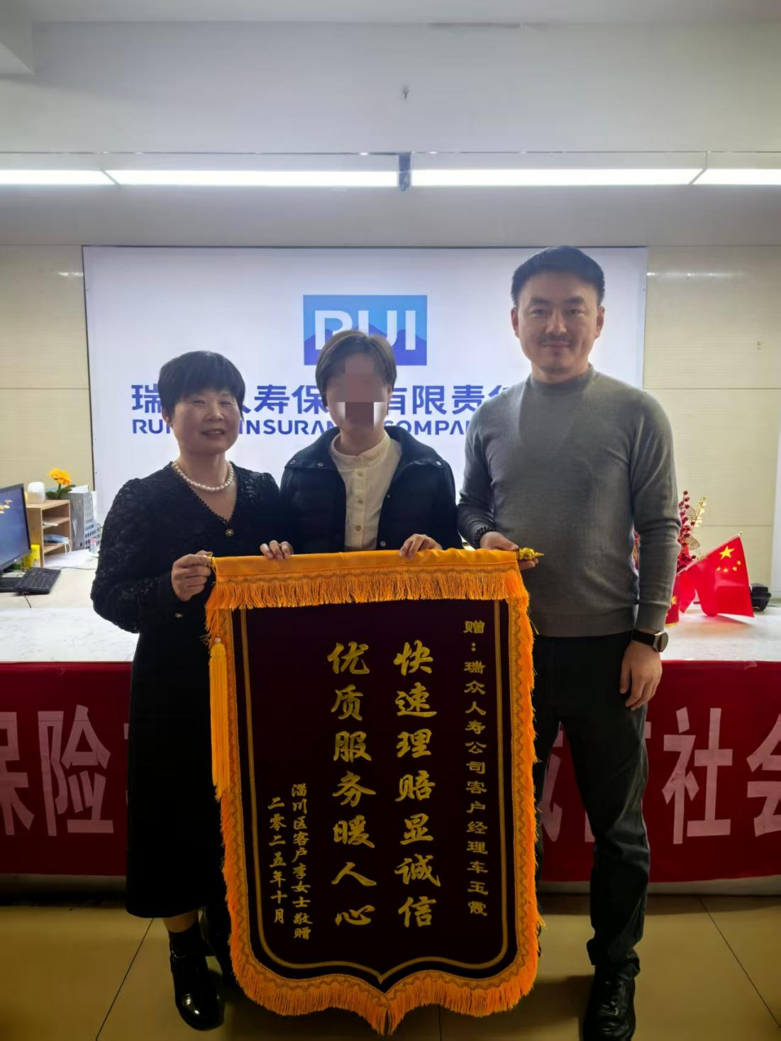 近日,一面印着“优质服务暖人心 快速理赔显诚信”的锦旗,由客户李先生家属郑重送到瑞众保险淄博中支淄川支公司,金色字迹熠熠生辉,承载着绝境中的感恩与信赖。这背后,是32万余元理赔款纾解家庭困境的暖心故事。