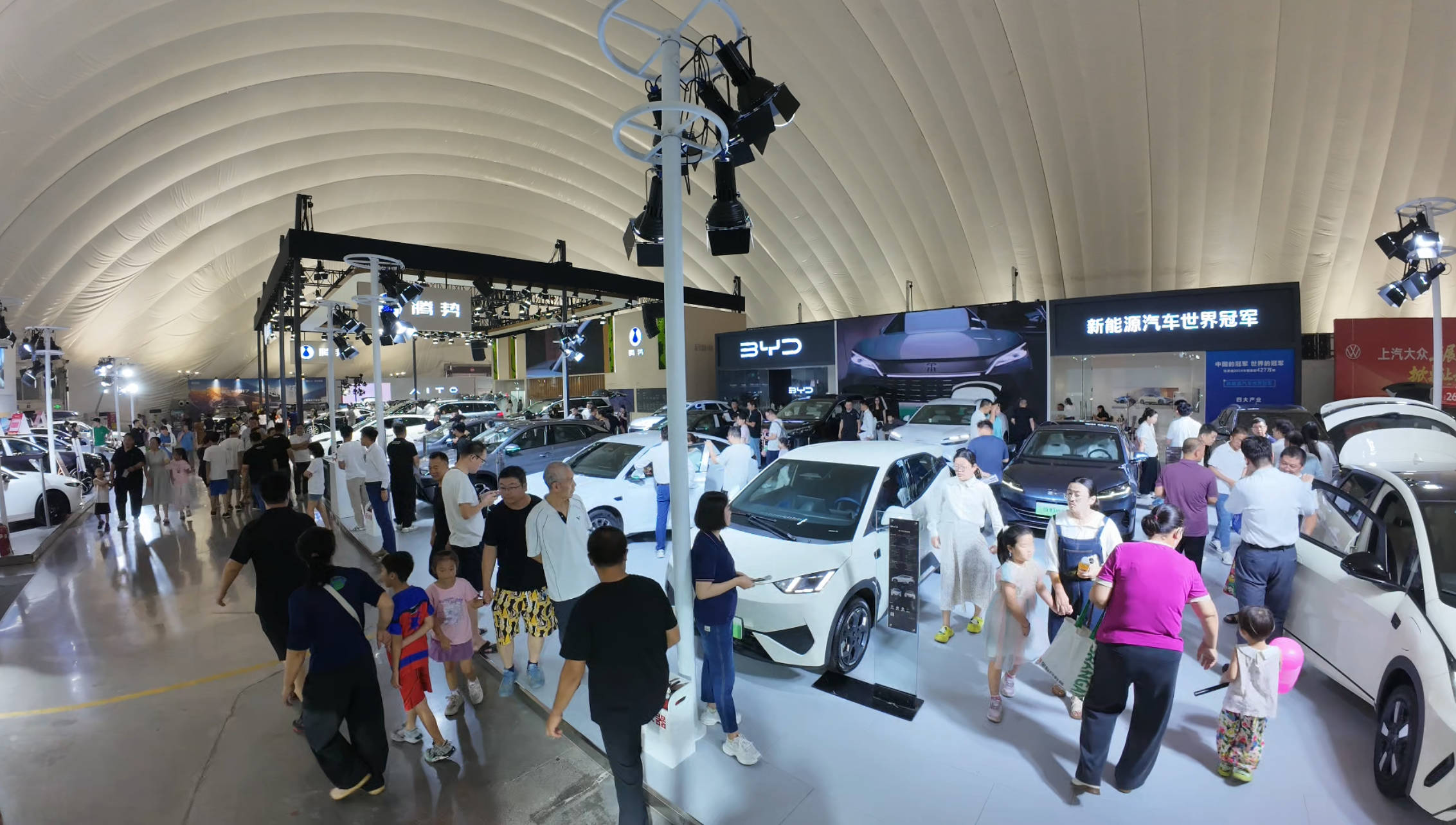 夜间经济表现亮眼。展会首次将每日闭馆时间延长至20:00,有效缓解上班族观展难题,被观众称为“最宠消费者的一届”。汽车灯光秀、户外电影院、后备厢集市等夜场活动广受欢迎,成为市民夜间休闲、亲子娱乐和消费打卡的热门场所。