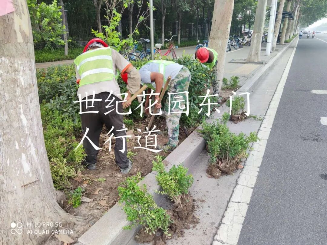 8月19日,记者在张店区商场路与西五路交叉路口南约50米处看到,一条斑马线连接了西五路东西两侧的人行道,但是这条斑马线却被道路两旁的路沿石“挡住”,施工人员正在现场拆除斑马线两头的路沿石;而在世纪花园社区东门门前,跨越世纪路的斑马线直接“冲”到了绿化带里,施工人员在现场移出绿化带里的植物,同时拆除绿化带边缘的路沿石。