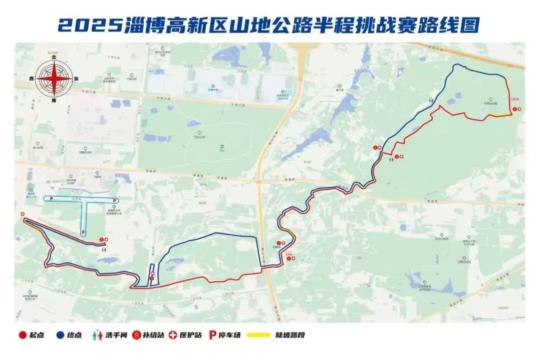 2025淄博高新区山地公路半程挑战赛,定于2025年9月27日在高新区双创公园城激情开跑!本次赛事不设计时环节,参赛者需途径2个打卡点,分别领取手环,最终凭手环及通过终点的先后顺序确定名次。比赛将分别评选男女组前10名,并给予相应奖励。欲获取最新赛事资讯及报名通道信息,敬请关注“淄博齐盈文旅”公众号。