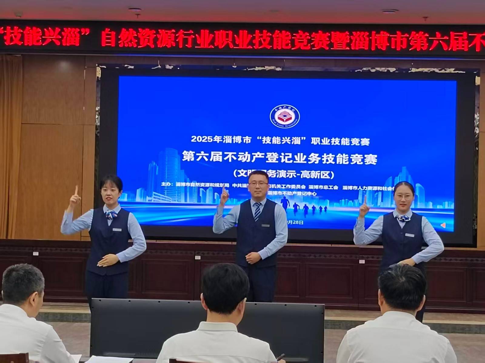 近日,全市“技能兴淄”自然资源行业职业技能竞赛暨第六届不动产登记业务技能竞赛决赛圆满收官。淄博高新区自然资源和规划分局代表队最终以总分第一的优异成绩斩获团体冠军。此次佳绩的取得,是高新区自然资源和规划分局持续推进不动产登记队伍作风常态化建设、不断提升服务效能的集中体现。下一步,高新区自然资源和规划分局将以此次竞赛为契机,进一步弘扬“工匠精神”,以赛促学、以赛促练、以赛促干,持续加强队伍建设,不断提升登记质量和服务水平,为优化全市营商环境、保障群众合法权益、推动高质量发展贡献更大力量。