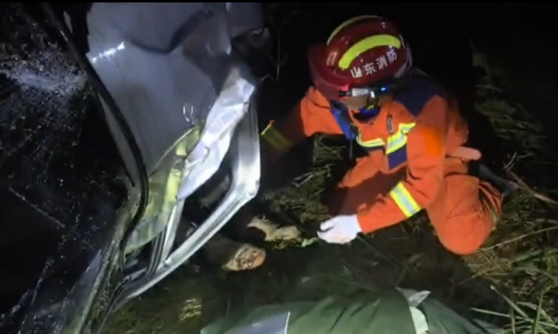 车坠50米山沟 深夜“极限营救”——淄博消防4小时救出6人