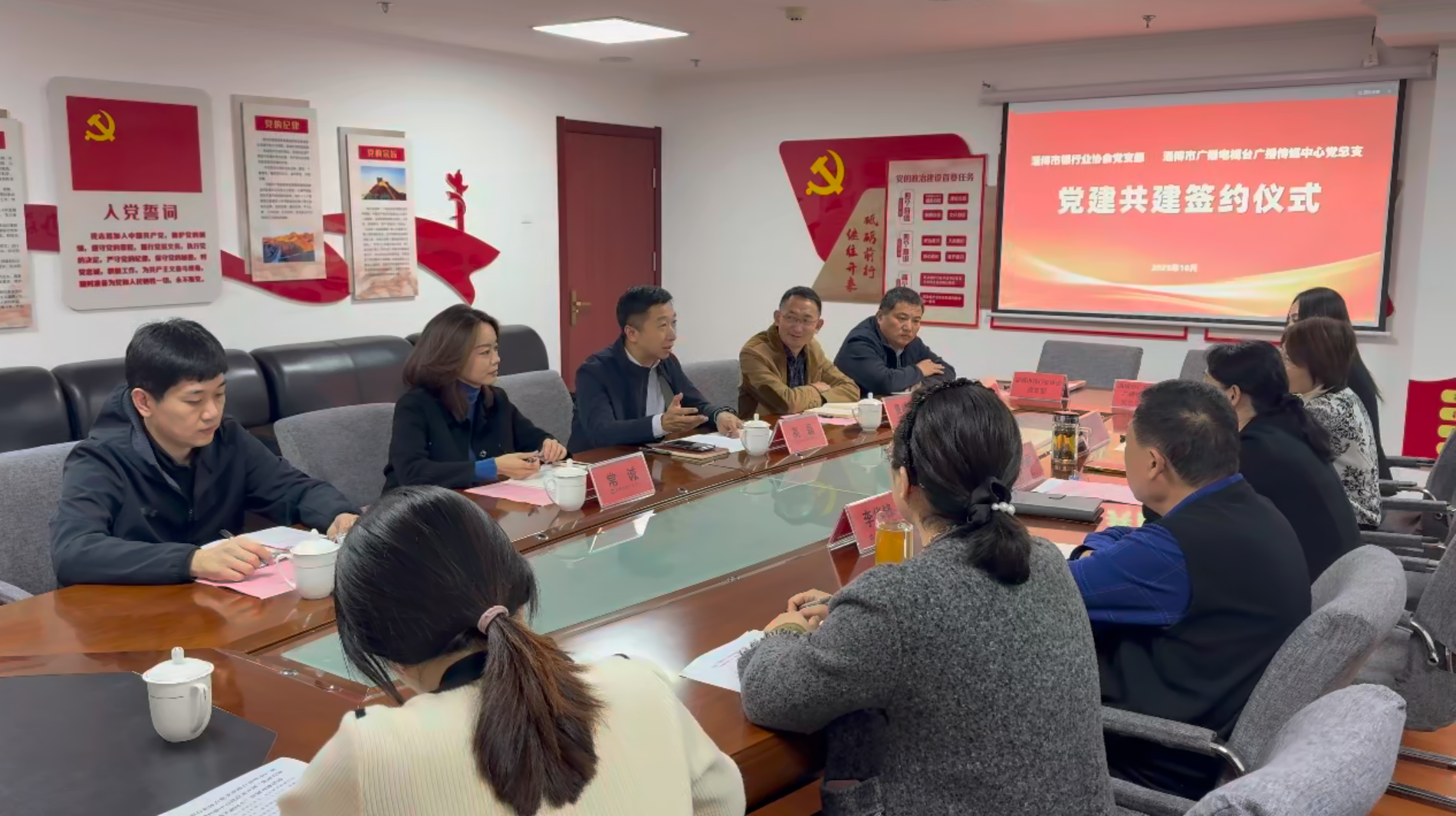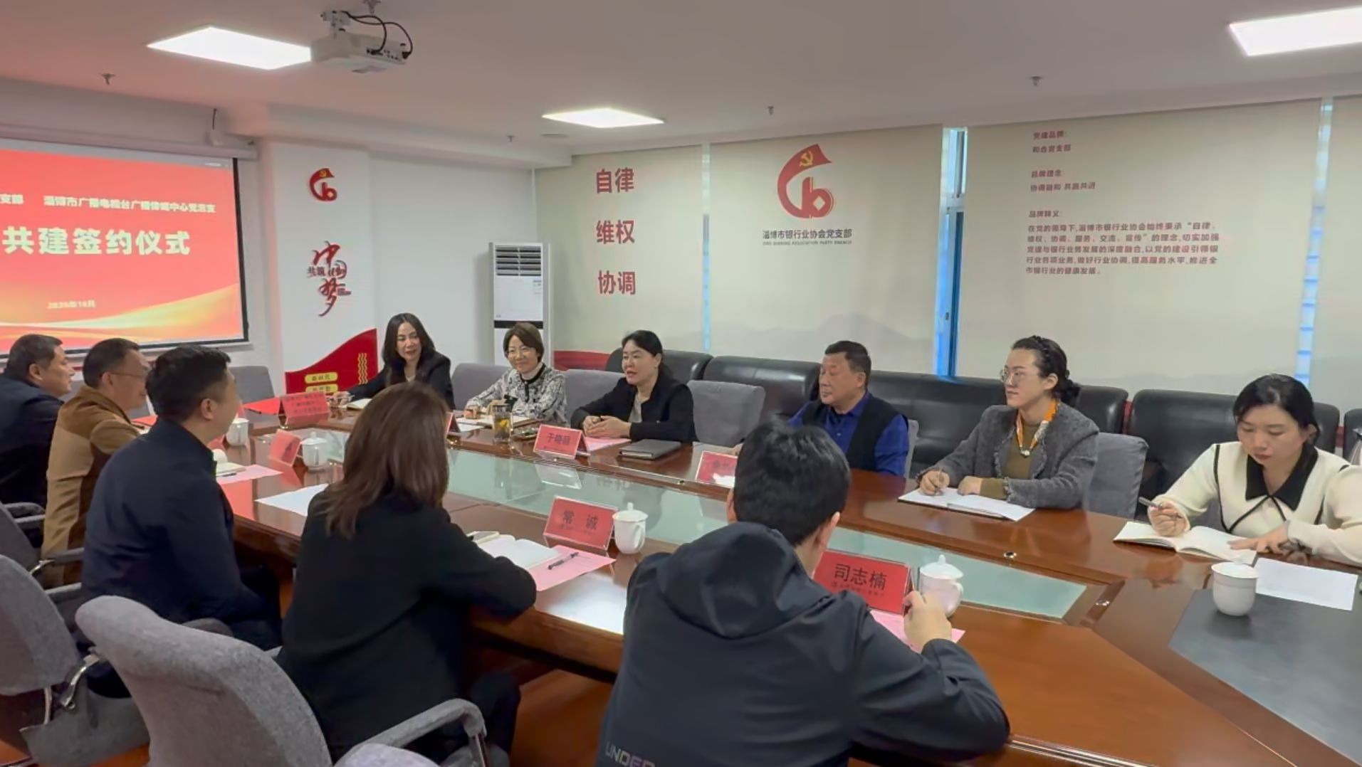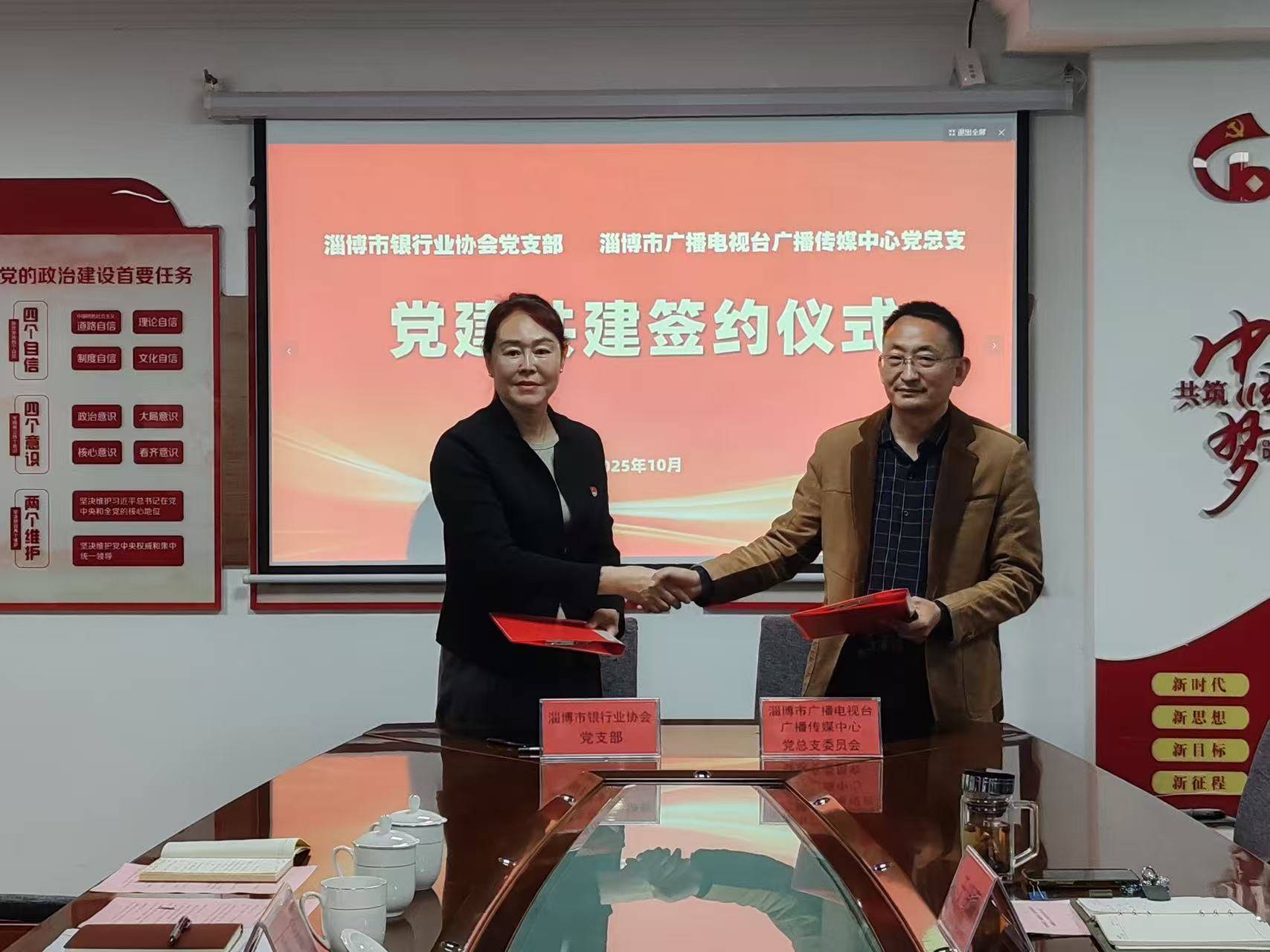 为深入贯彻落实新时代党建总要求,充分发挥党建引领作用,探索党建业务深度融合新路径,10月27日,淄博市银行业协会党支部联合淄博市广播电视台广播传媒中心党总支举办“党建引领聚合力 银媒携手惠民生”党建共建活动,以组织共建激活服务动能,为地方经济社会高质量发展打造红色引擎。