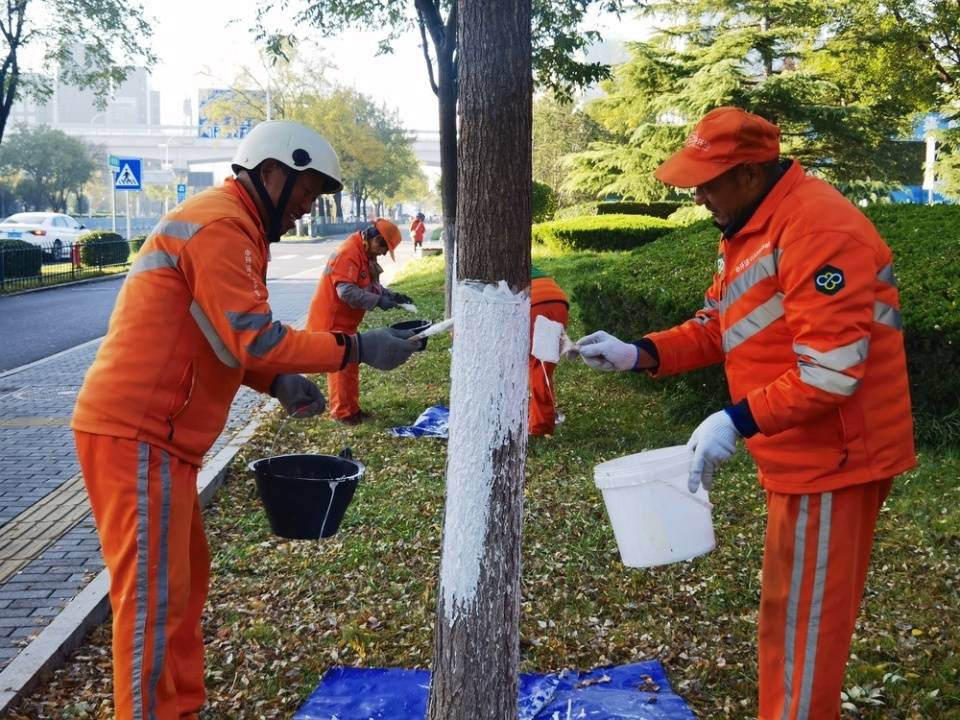 为进一步提升城市绿化品质,强化行道树冬季防护与病虫害防治能力,近日,淄博高新区综合执法与应急管理局正式启动2025年度树木涂白专项行动。淄博中环洁城市环境服务有限公司提前部署、科学推进,为辖区树木披上“洁白防护衣”,增强树木抗寒防虫能力,打造规整美观的城市景观。下一步,淄博中环洁将持续秉承精细化管理理念,以本次涂白专项行动为契机,深化绿化养护各项工作,不断优化养护技术与管理模式,全力为市民打造干净整洁、舒适美丽的绿色家园。