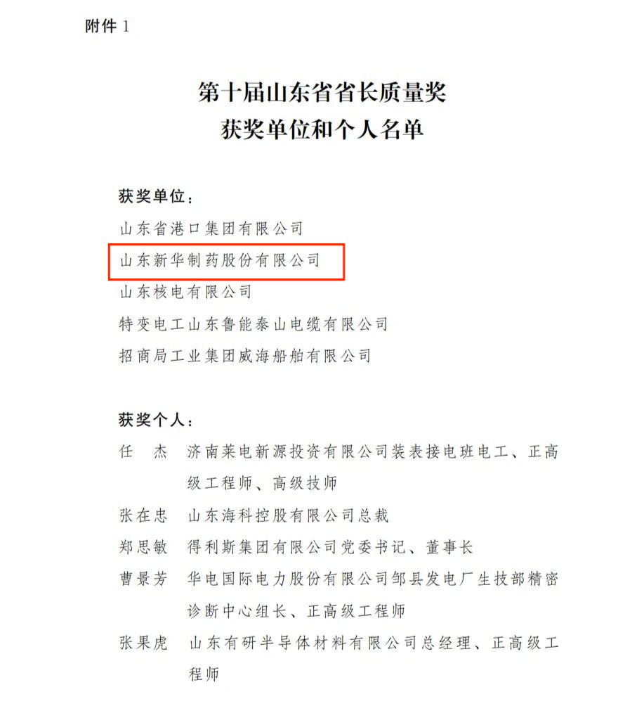 近日,山东省人民政府通报表彰第十届山东省省长质量奖获奖名单,山东新华制药股份有限公司荣耀上榜。此次新华制药斩获省长质量奖,不仅是企业自身努力的结果,更是淄博高新区市场监管局“监管+服务”双轮驱动的生动实践。下一步,高新区市场监管局将继续发挥职能优势,以点带面推动更多企业提升质量管理水平,为区域经济高质量发展注入强劲动力。