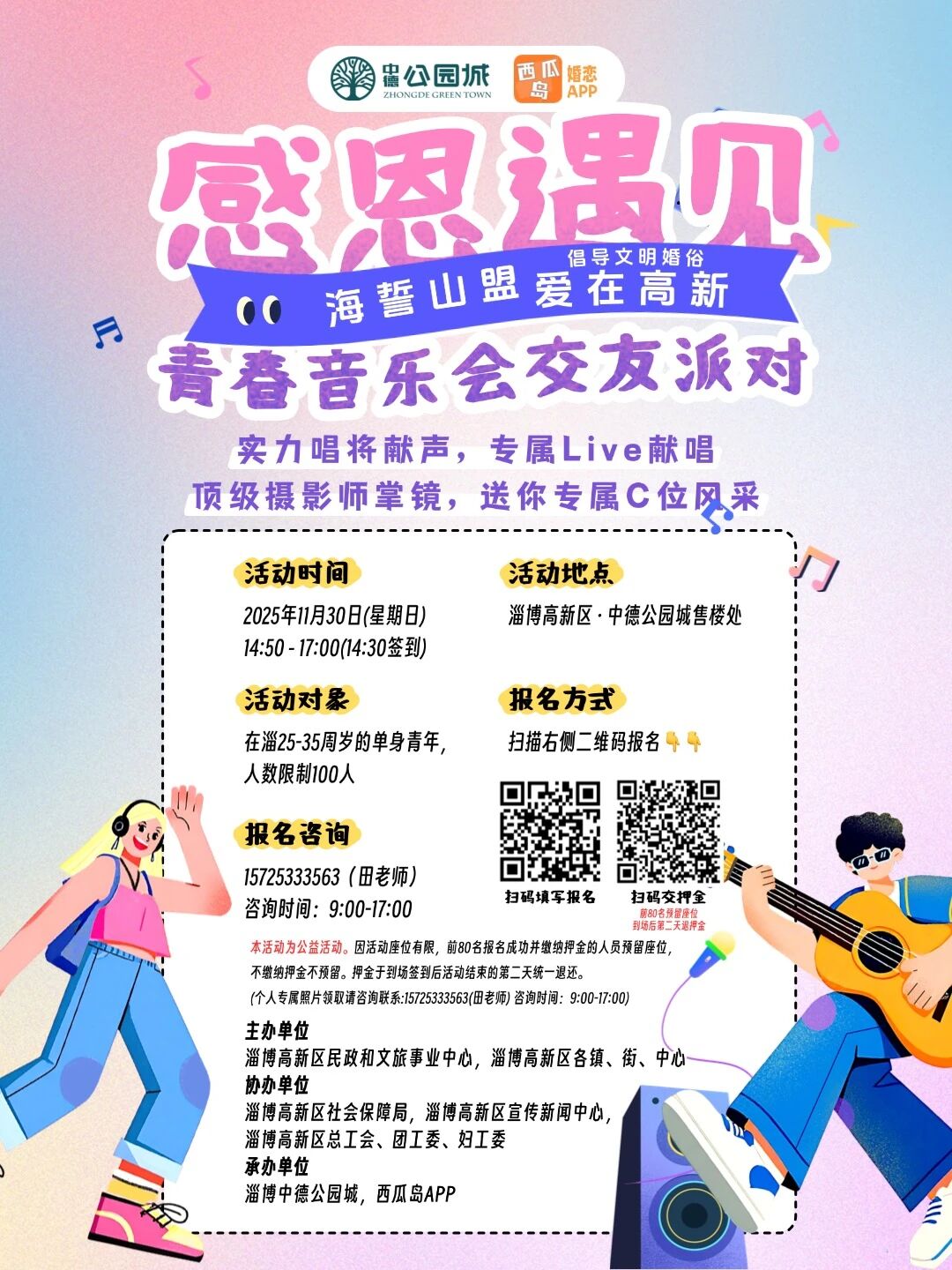 当悠扬旋律遇上怦然心动,当浪漫氛围邂逅真挚情谊,一场专为青年打造的交友盛宴即将启幕。淄博高新区精心策划的“海誓山盟·爱在高新”青春音乐会交友派对将于2025年11月30日(星期日)举办。本次活动由高新区民政和文旅事业中心、高新区各镇(街、中心)联合主办,高新区社会保障局、高新区宣传新闻中心、高新区总工会、团工委、妇工委协办。活动全程公益免费,参与者可免费观赏精彩的音乐表演,畅享所有互动环节与福利。