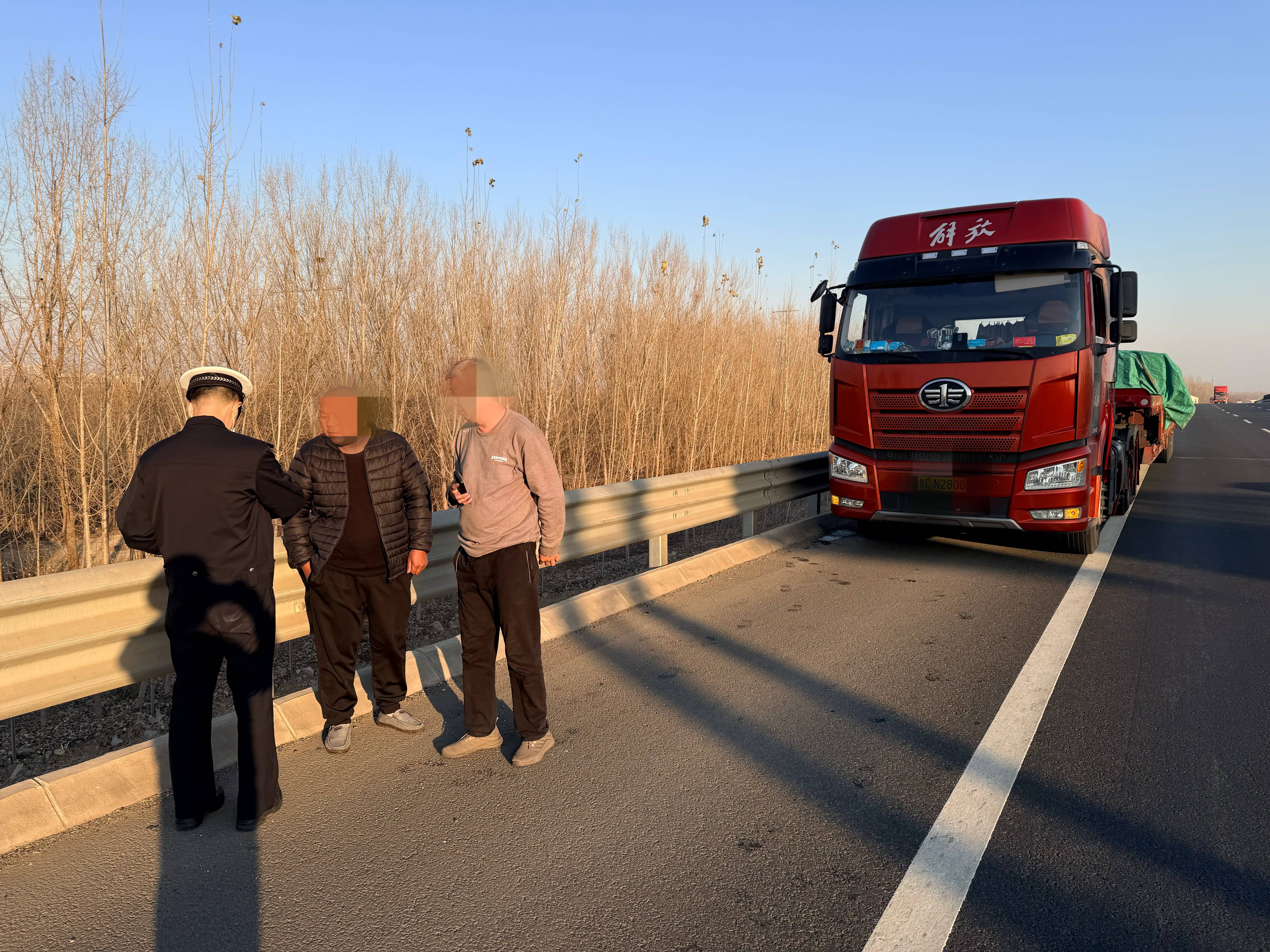 12月4日,当日,滨台高速交警民警巡逻至滨台高速淄博西枢纽滨州方向匝道出口时,发现一辆小型轿车违规停靠在应急车道内,车内两名驾乘人员正处于睡眠状态。经民警现场询问得知,该车驾驶人与其妻子从潍坊驾车前往北京,途中因长时间驾驶产生疲劳感,竟直接将车辆停在匝道应急车道内休息,且未按规定摆放警示标志,也未开启危险报警闪光灯,对后方驶来的车辆构成严重安全威胁。无独有偶,在滨台高速莱芜方向62公里处,民警发现一辆半挂货运车辆同样违规停在应急车道内,驾驶人在捆绑挂车篷布后便在车内休息,车辆后方未设置任何安全警示标识,民警当即对该车采取安全防护措施,及时消除安全隐患。
