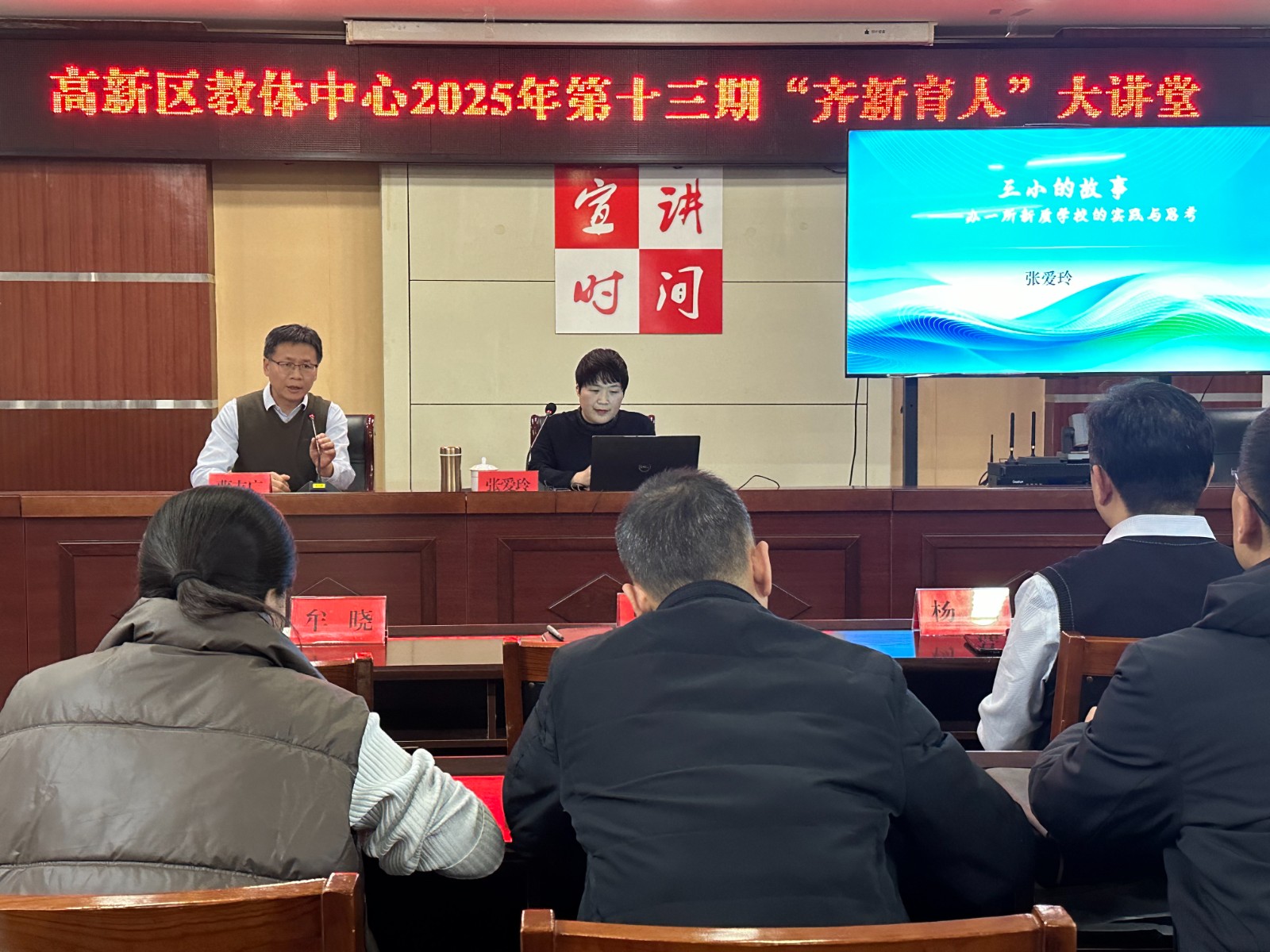 为搭建开放、共享的对话平台,进一步转变发展理念,在实践中推动教育体育工作创新发展,近日,淄博高新区教体中心举办第十三期“齐新育人”大讲堂。本期大讲堂邀请了高新区第三小学党支部书记、校长张爱玲以《办一所新质学校的实践与思考》为题进行授课。下一步,高新区教体中心将持续提升业务能力,正视工作中存在的不足,积极探索有效的解决途径;同时,在创新层面不断自我精进,积极借鉴身边优秀榜样的经验,全力推动教育工作的持续进步。