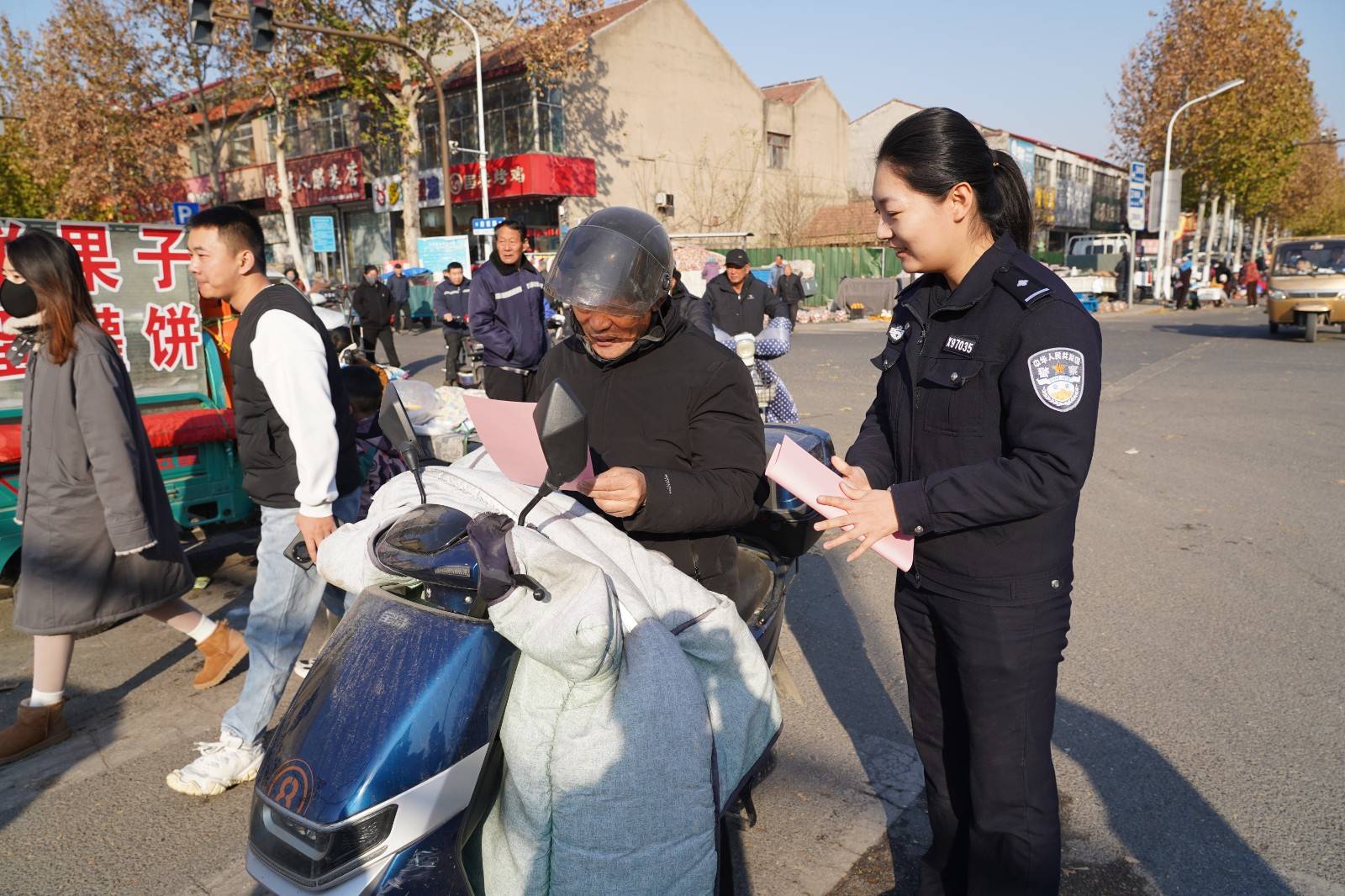 近日,淄博高新区交警大队走进辖区集市开展交通安全宣传活动。针对集市周边电动车出行密集的特点,民警通过现场讲解、以案释法等方式,向骑乘人员重点讲解佩戴安全头盔的重要性,并对不规范佩戴行为进行现场纠正。此次宣传活动将安全提示融入日常采买场景,切实提升了电动车骑行人员的守法意识和自我防护能力。