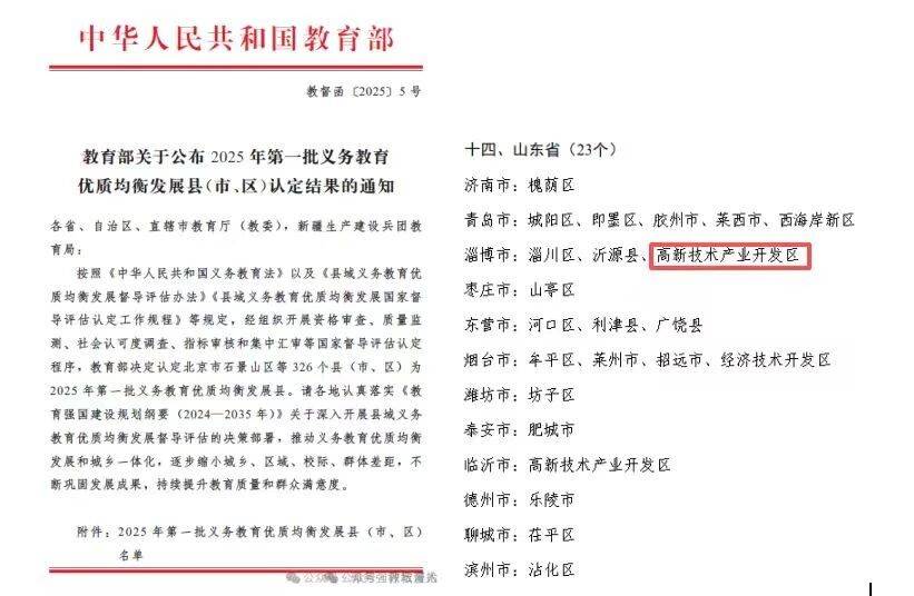 近日,淄博高新区成功获评“全国义务教育优质均衡发展区”,这一国家级荣誉的背后,是高新区深耕教育公平与质量的坚定实践。从资源配置到内涵发展,从队伍建设到服务保障,高新区用一系列实打实的创建成果,让优质教育的阳光普照每一个孩子的成长之路。未来,高新区将持续深化教育改革,巩固创建成果,让优质教育资源更加均衡、教育质量持续提升,为每一个孩子的美好未来赋能护航!