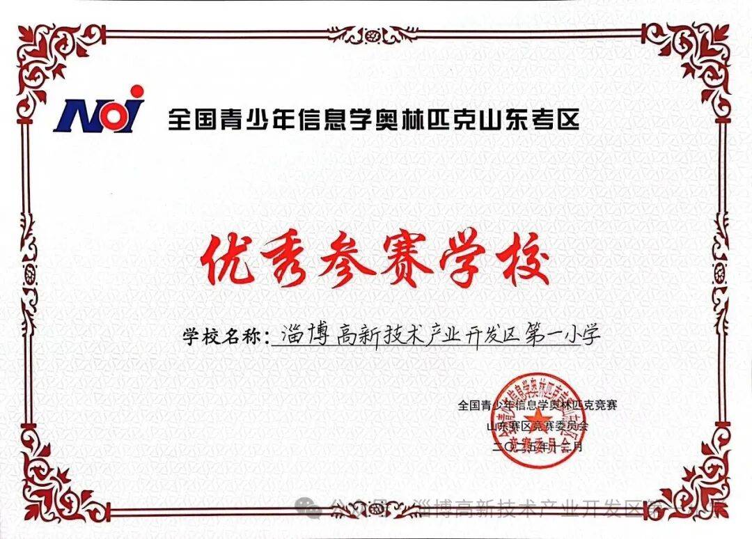 近日,山东省信息学奥林匹克竞赛表彰会议传来重磅喜讯——淄博高新区第一小学被授予“全国青少年信息学奥林匹克山东考区优秀参赛学校”荣誉称号!未来,高新区第一小学将继续深耕信息学教育沃土,完善特色培养体系,为学子们提供更优质的信息学学习资源,助力更多孩子在信息科技的海洋中扬帆远航,书写更精彩的成长篇章!