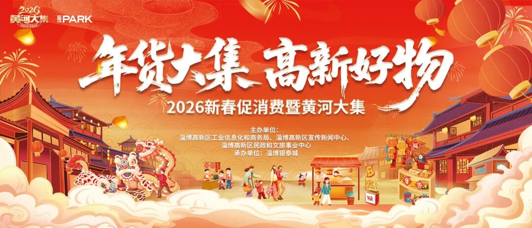 新春佳节即将来临,浓郁的年味正悄然弥漫。2026年2月6日至14日,由淄博高新区工信商务局、宣传新闻中心、民政文旅中心联袂主办的“年货大集 高新好物”新春促消费暨黄河大集活动,将在高新区银泰城盛大启幕。届时,100个特色展位将集体亮相,为广大市民呈上一场精彩纷呈的年货消费盛宴。