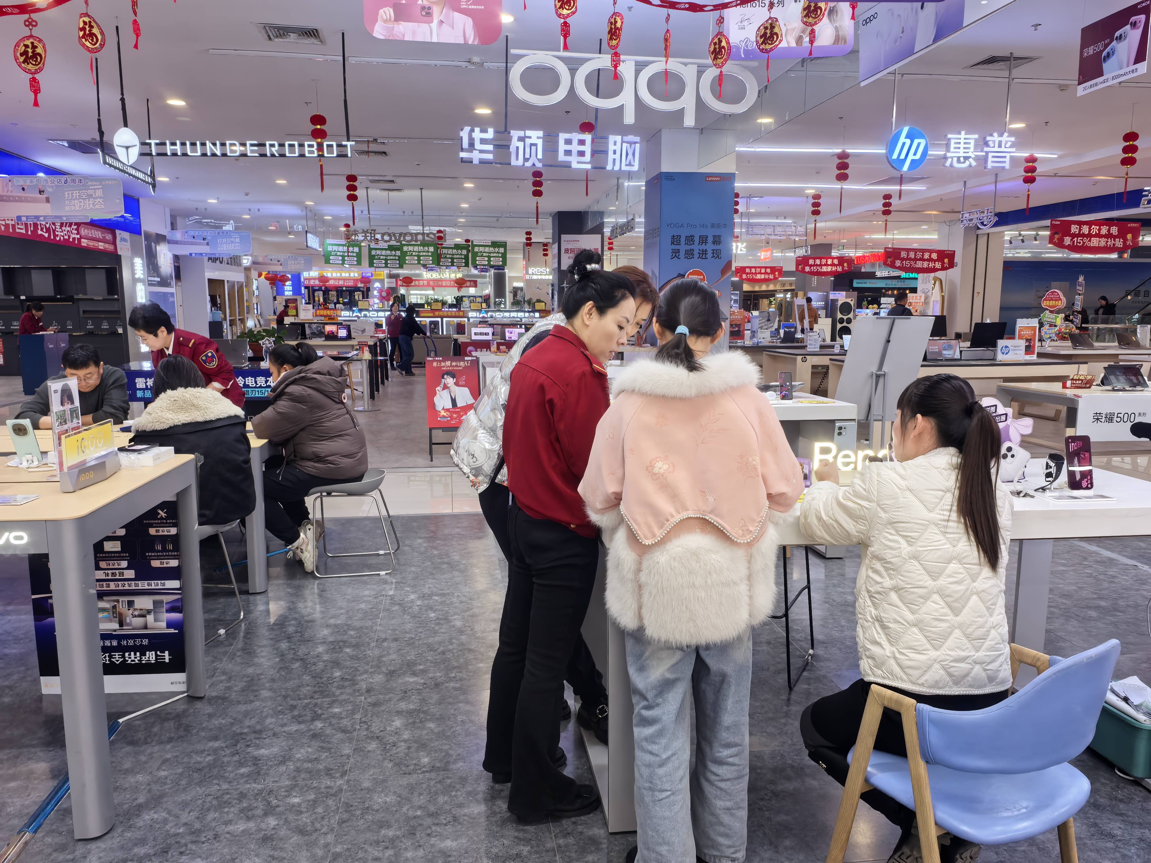 这次国补覆盖范围广、力度大:补贴覆盖10大类产品,1级能效家电,冰箱、空调等6类和6000元内数码产品,手机、智能手表等4类均可享15%补贴,家电单件最高补1500元,数码最高补500元。新星商厦家电经理杨群:政策落地后,我们首周日均客流达360人次,环比增长120%,周末超600人次;销售额大幅提升,1级能效家电销量占比98%以上。我们还叠加了厂家补贴和旧机回收等优惠政策,让消费者享受更多的优惠。消费者可以在门店国补专区选购后,通过‘爱山东’APP或云闪付领券就能直接抵扣,即买即享。我们有专业销售人员全程指导服务,并提供90天延期送货和24小时安装服务。