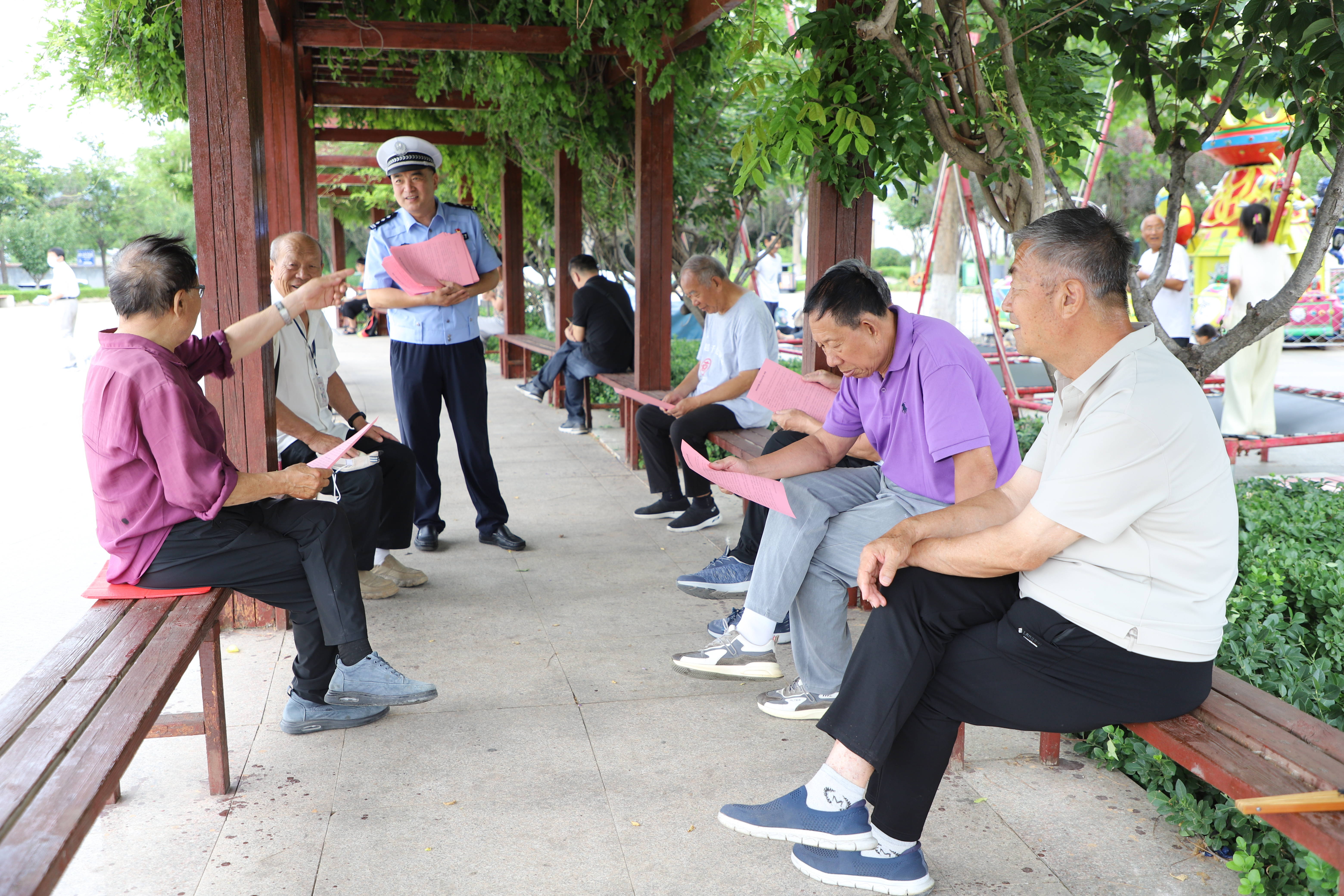 对此,8月11日,淄博市公安局交通管理支队博山区大队组织警力走进辖区公园、广场、集市等老年人聚集区域,利用他们乘凉、赶集的时机,将道路交通安全送到他们身边,用“唠家常”的方式,让老年人将交通安全知识听进耳朵、记在心里,用实际行动引导和呵护老年群体的出行平安!