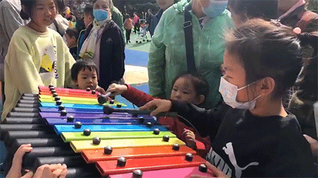 最让人眼前一亮的是游乐园内的这些打击琴,以前只见过那种小小的,还真没见过这么大的嘞!