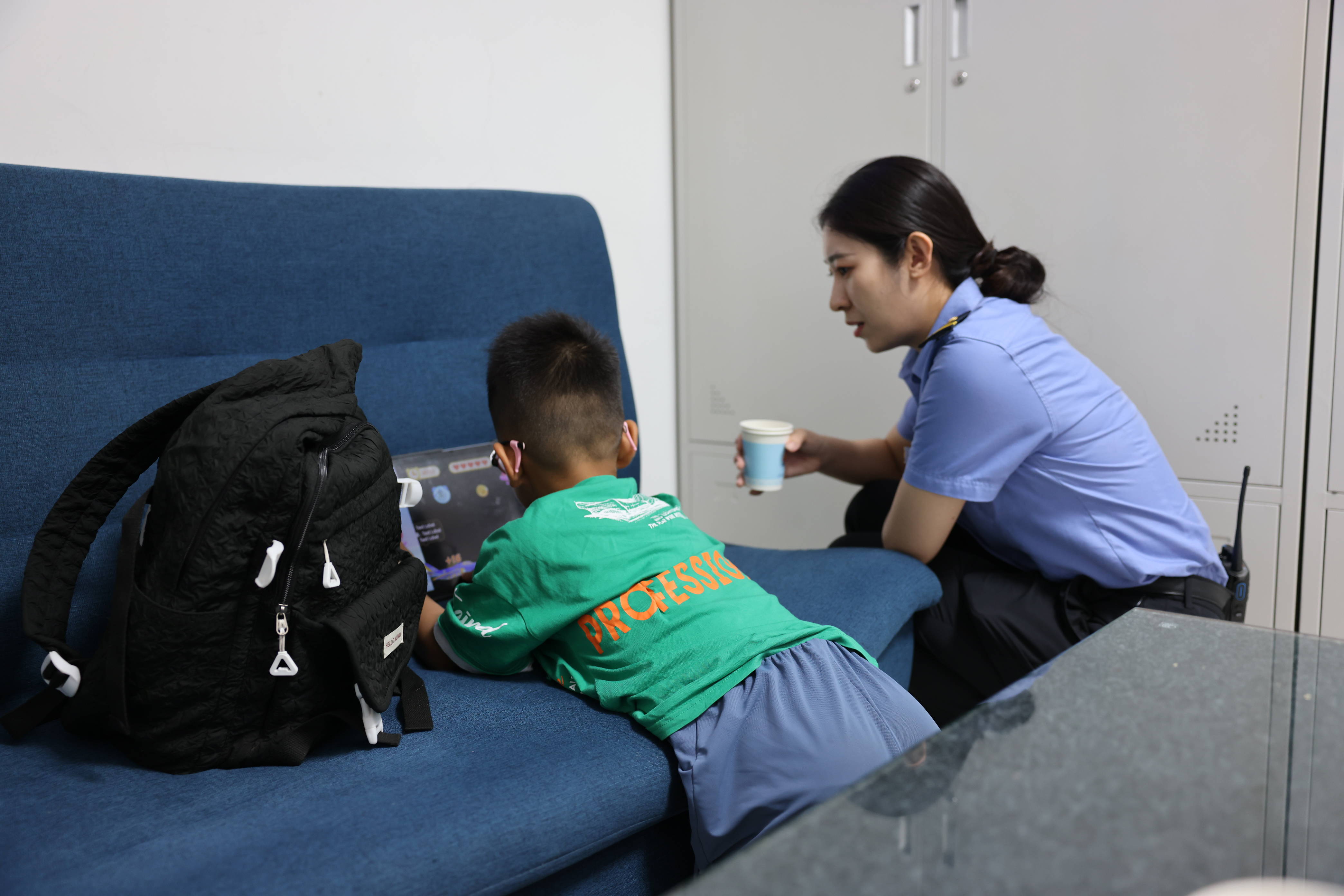为了让男孩安心等待,工作人员将他带到值班室休息,为他拿来矿泉水解渴,并安排一名女客运员全程陪伴,细心安抚,有效缓解了他的紧张情绪。