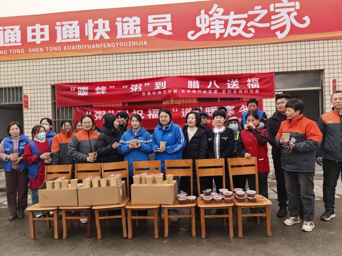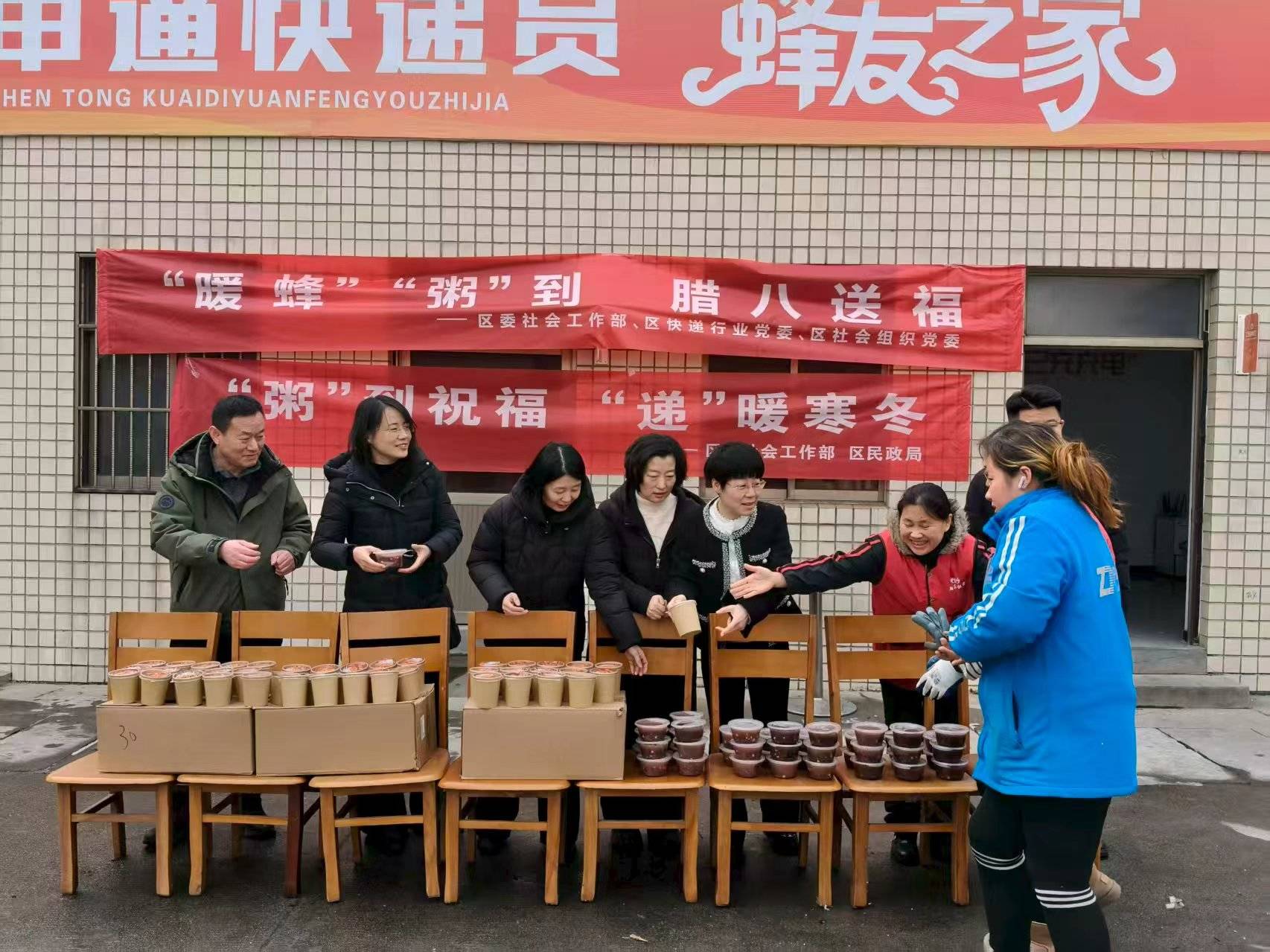腊八节前后,淄川区民政局联合淄川区委社会工作部及社会组织开展“‘粥’到祝福 ‘递’暖寒冬”腊八节送温暖活动,将一碗碗热气腾腾的腊八粥送到快递小哥等新就业群体手中。