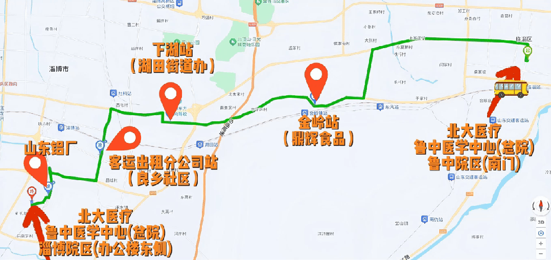 这趟车的路线可太“懂”居民了!由东向西“串”起,鲁中院区(南门)、金岭站(鼎辉食品)、下湖站(湖田街道办)、客运出租分公司站(良乡社区)、山东铝厂、淄博院区(办公楼东侧)。