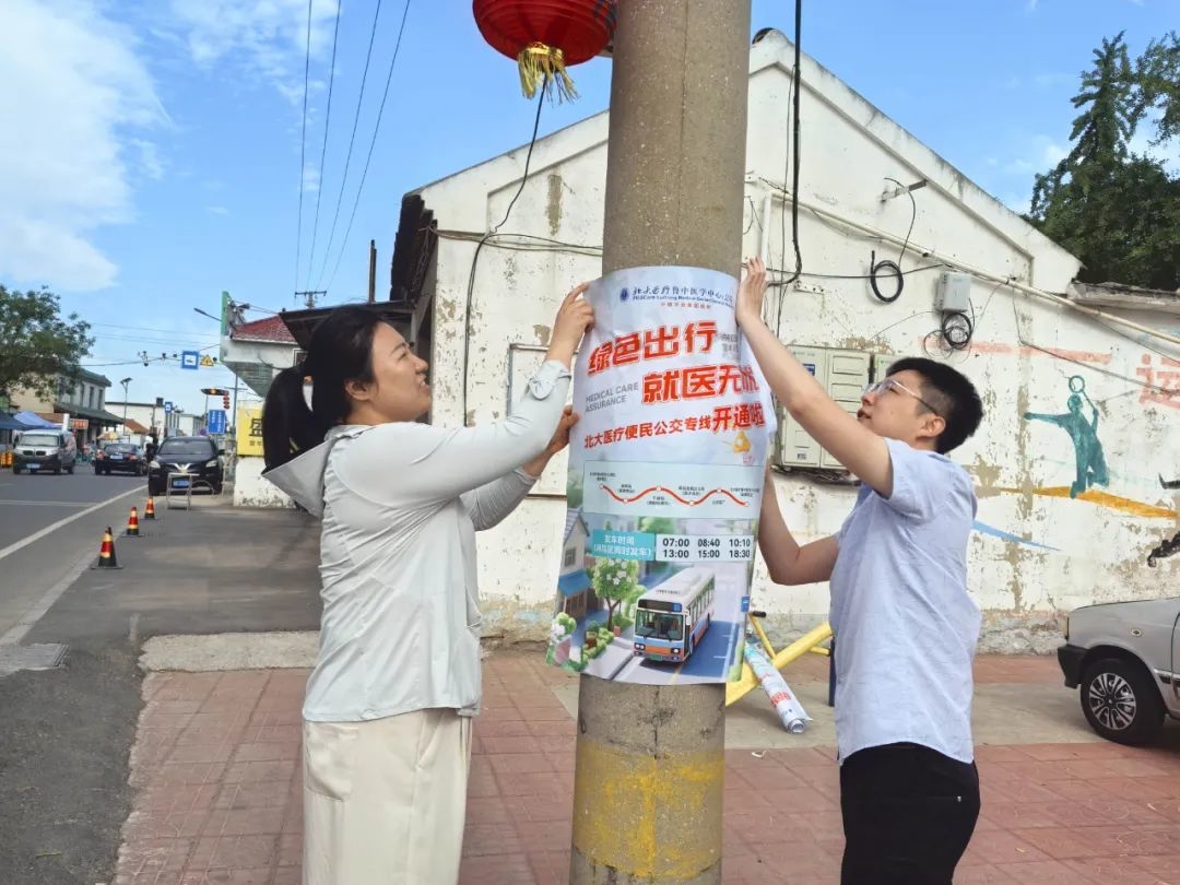 为了让更多人知道这趟“宝藏专车”,中心(总院)副主任、副院长霍洪强、侯冠华身体力行,带领业务拓展部组织鲁中院区、淄博院区工作人员变身“宣传员”——在途经站点发传单、贴海报,一边递资料一边“划重点”:“阿姨您看,这是路线图,到金岭下车走两步就到您家啦!”“大叔,咱们鲁中院区最近还开了中医理疗新项目,坐专车来体验超方便……”