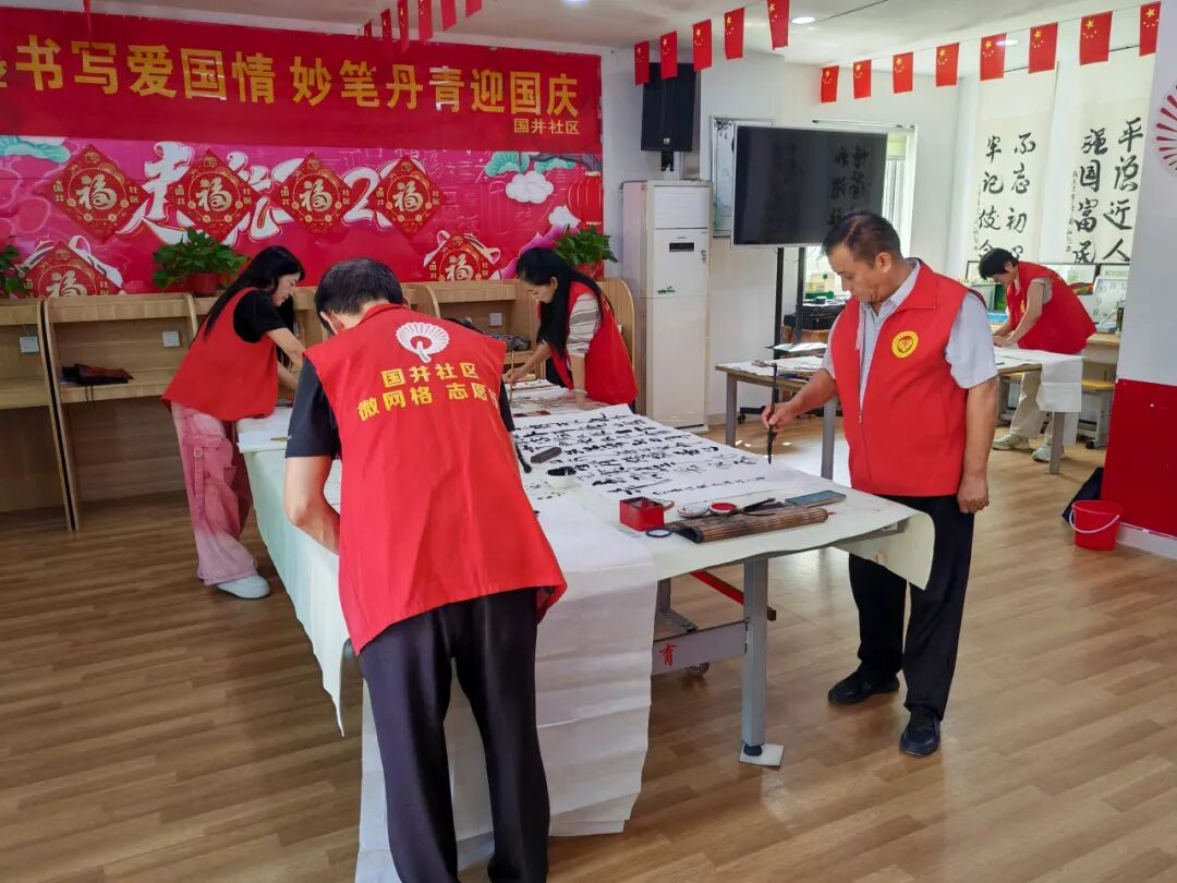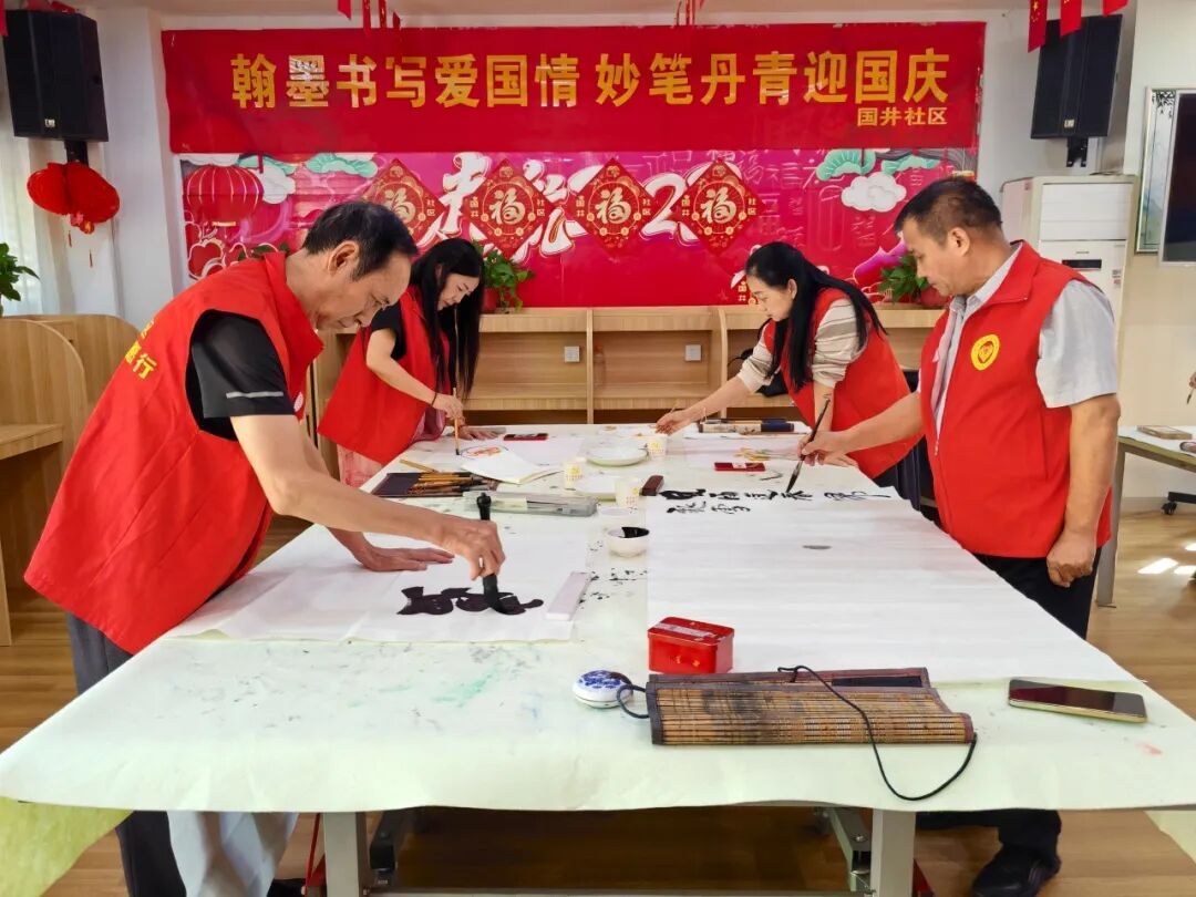 高青县田镇街道国井社区开展“翰墨书写爱国情 妙笔丹青迎国庆”国庆节主题活动,邀请辖区书画爱好者齐聚一堂,以笔墨为媒,共贺祖国华诞,共绘时代华章。