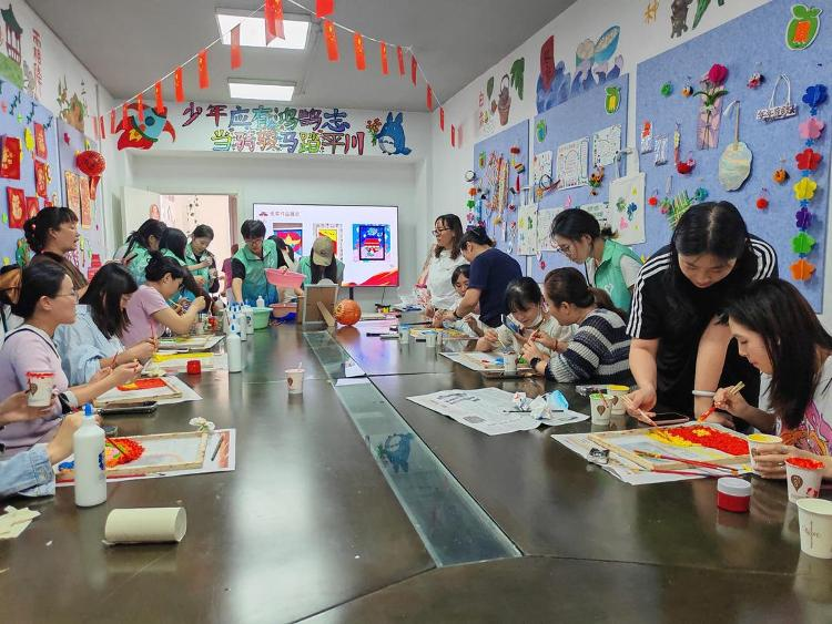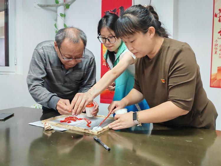 淄博高新区四宝山街道金都花园社区党委联合山东工业职业学院基础教育与艺术学院在社区举办“纸浆绘山河,赤心献祖国”主题创作活动,社区党员、居民、社区工作人员通过纸浆画艺术表达爱国情怀。