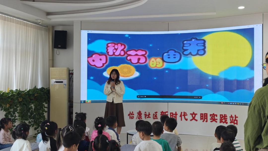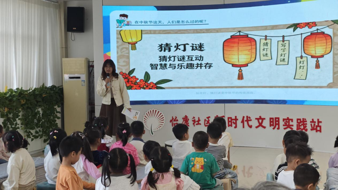 活动伊始,社区志愿者以图文并茂的课件搭配生动故事,为中班幼儿及家长讲解中秋起源与核心习俗,过程中穿插趣味提问,瞬间点燃孩子们的参与热情。