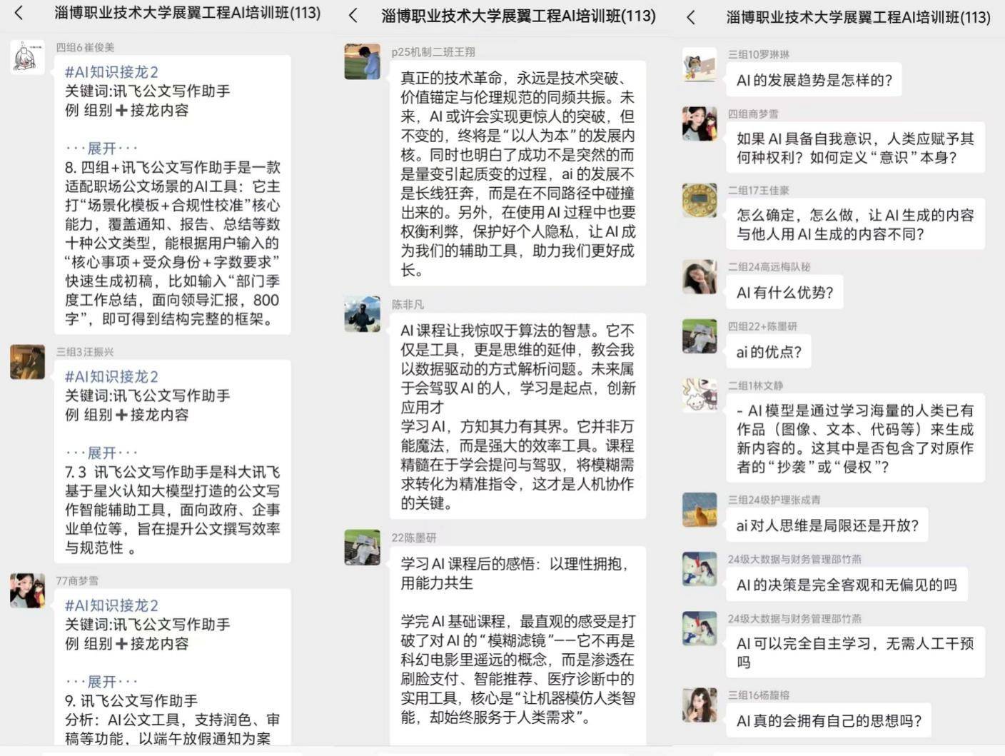 为深化资助育人内涵,提升受助学生数字素养与技能,2025年11月1日至6日,淄博职业技术大学“展翼工程”资助育人培训班开设《AI基础与技能应用》线上课程。课程依托社群平台搭建灵活高效的学习体系,让学员在自主规划与互动交流中夯实AI知识、提升应用能力。