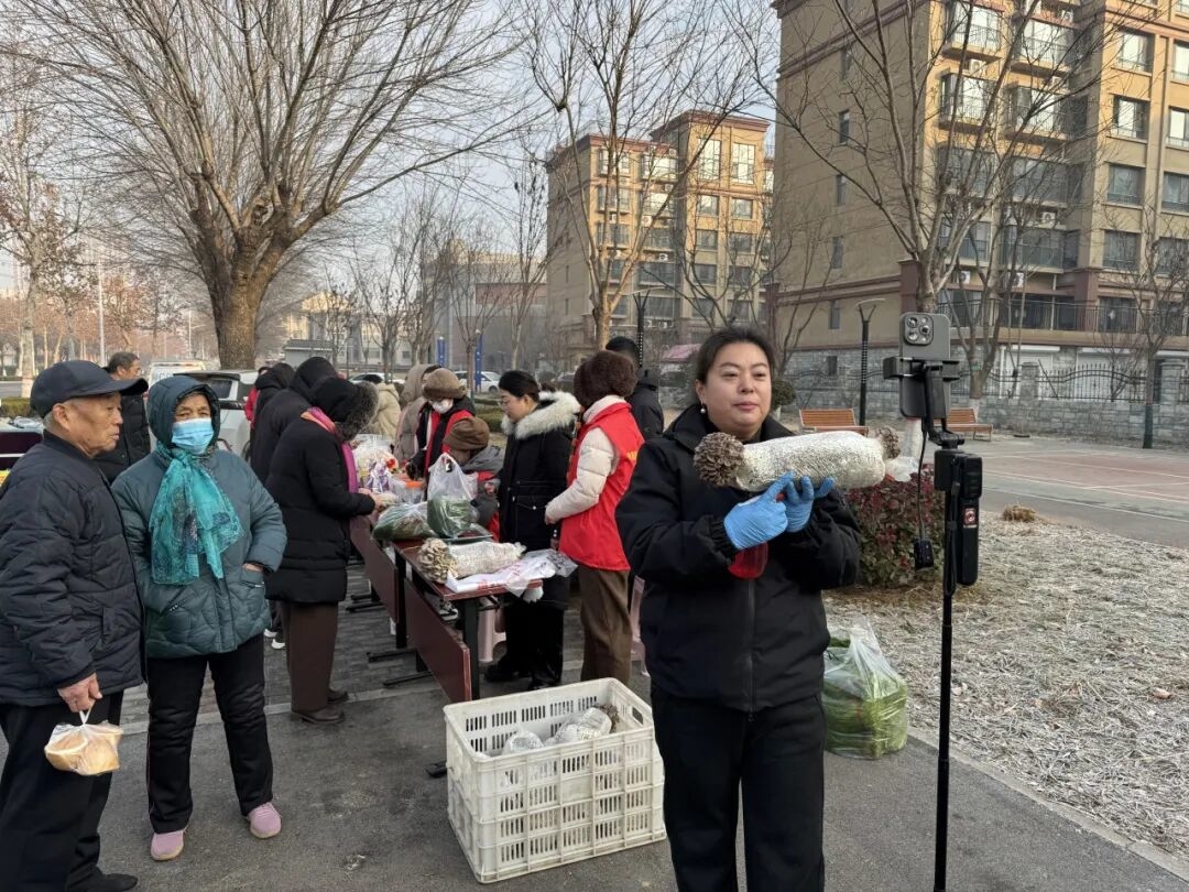 活动现场,琳琅满目的特色好品吸引了众多居民前来。新鲜水灵的时令蔬菜、纯正地道的农家调料、优质可靠的日用百货等应有尽有,其中最受欢迎的就是来自台陈村党支部领办合作社的有机茴香与新鲜菌棒。茴香色泽翠绿、香气扑鼻,菌棒洁净饱满、生机勃勃,摊位前很快聚满了驻足问价的居民,并有序排起长队。居民陈阿姨精心挑选着茴香,笑容满面地说:“这茴香味儿真浓郁,元旦就给孩子们包顿香喷喷的茴香饺子!”