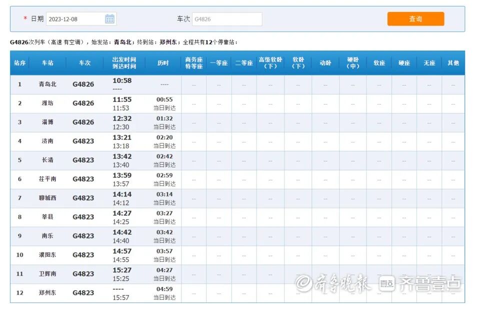 12月5日夜间,12306官方网站首次登出了济郑高铁的时刻表,列车时间是12月8日,也就意味着12月8日济郑高铁将全线通车。