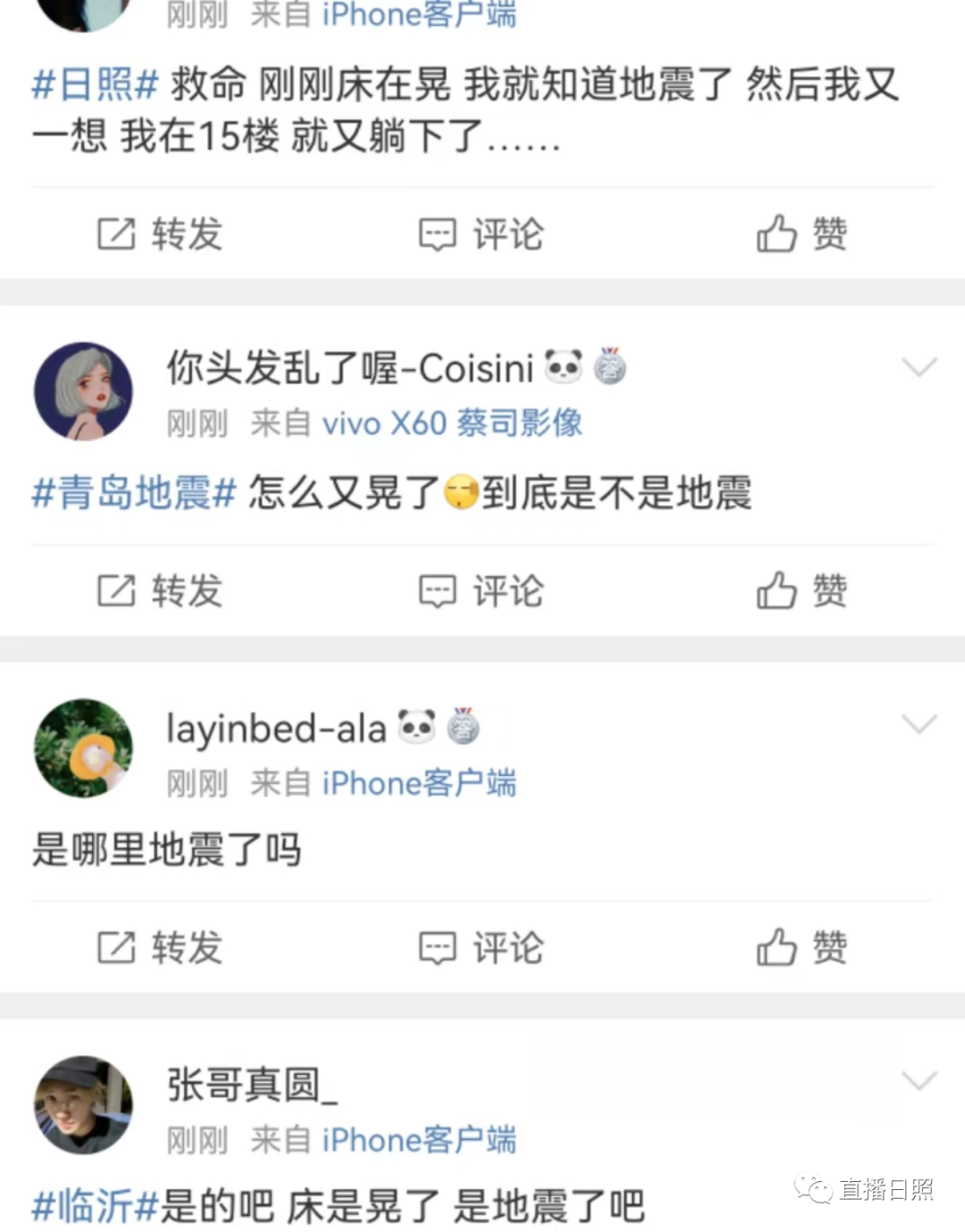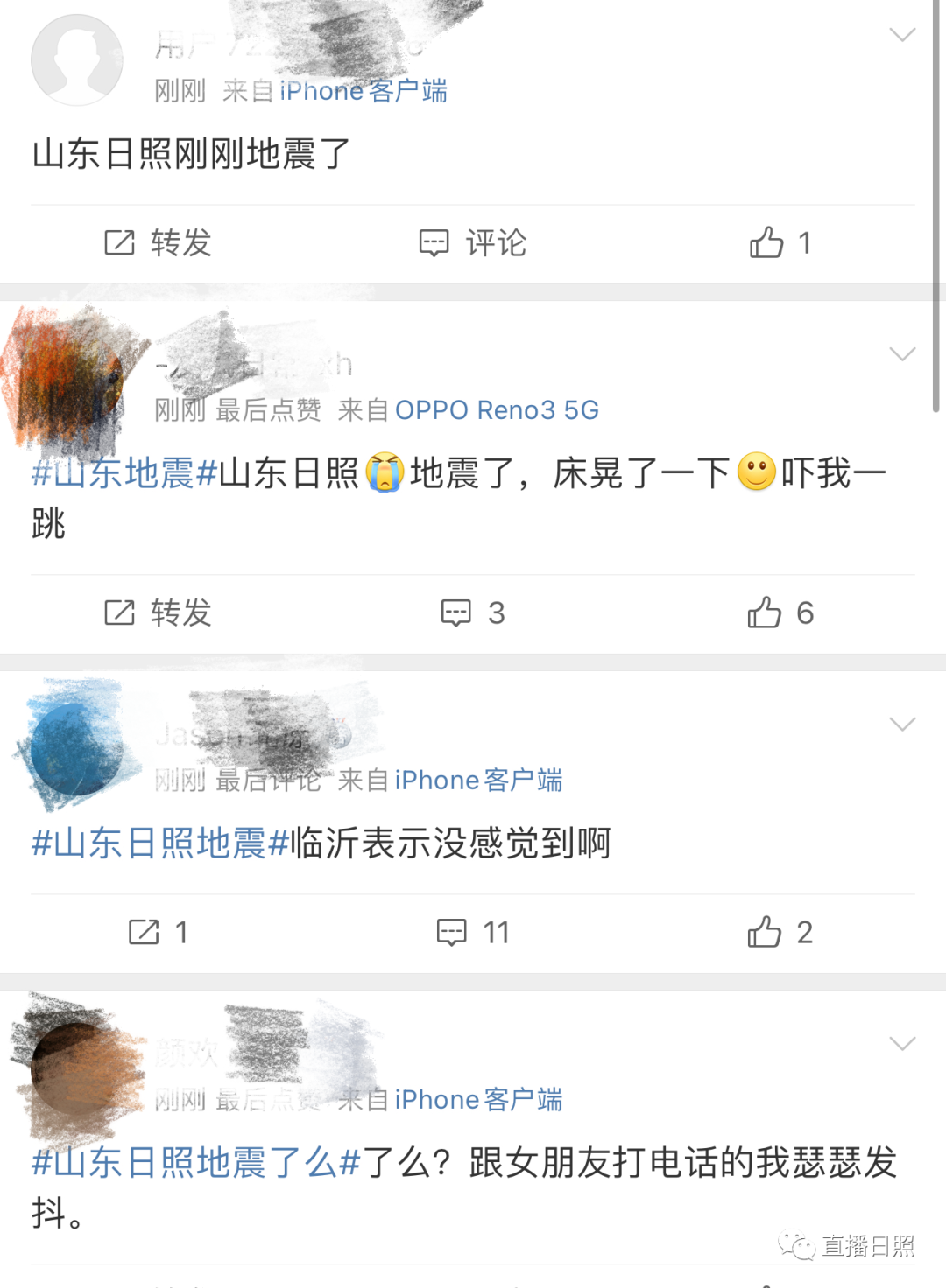 来源:中国地震台网、直播日照、临沂交通旅游广播、人民日报、九派新闻、微博评论等