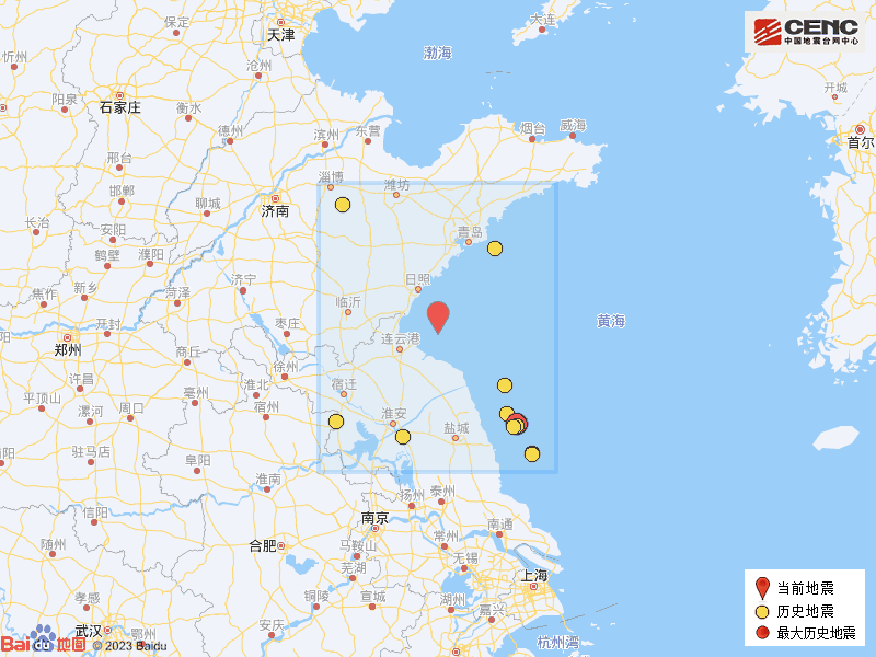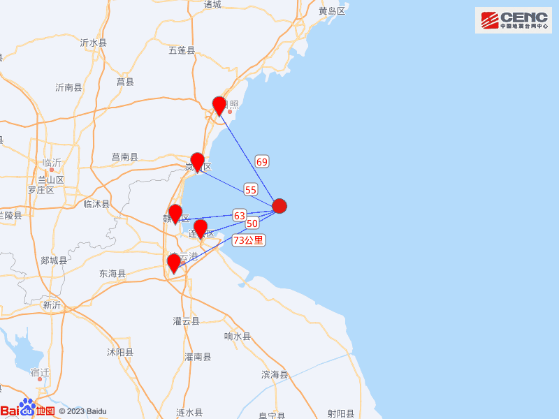据中国地震台网消息,本次地震震中距连云港连云区50公里、距山东岚山区55公里、距连云港赣榆区63公里、距山东东港区69公里、距连云港海州区73公里,距山东日照市65公里,距济南市323公里。