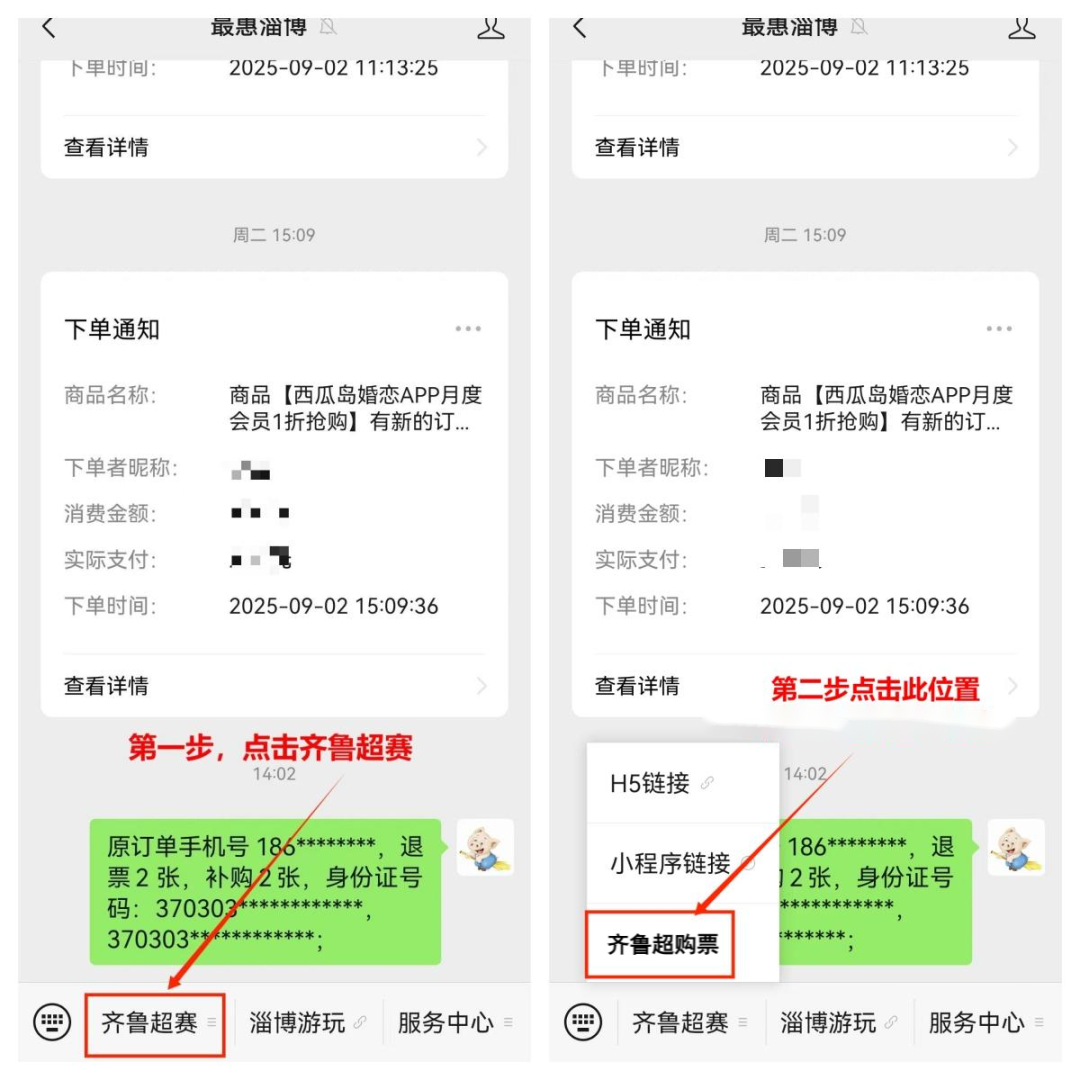 两批次售票均通过最惠淄博指定售票链接进行,售完即止。第二轮售票请于9 月 10 日上午 10:00前点击“齐鲁超购票”链接查看准备,通过弹出内容进行下单。(链接位置如下图所示,链接将在开售前1小时生成,提前无法查看)