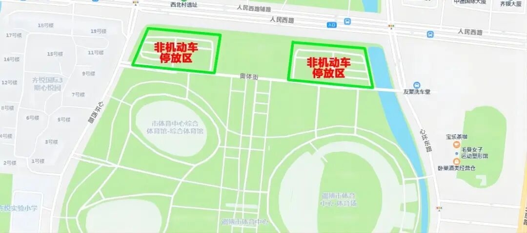 齐悦街、奥体街、心环东路(齐悦街以北至人民路段)、心环西路(奥体街以北至人民路段)禁止停放车辆;北京路西侧(理工大学西门以北至人民路段)非机动车道、机动车道禁止车辆停放;人民路(心环东路以东至北京路段)机动车道禁止车辆停放。