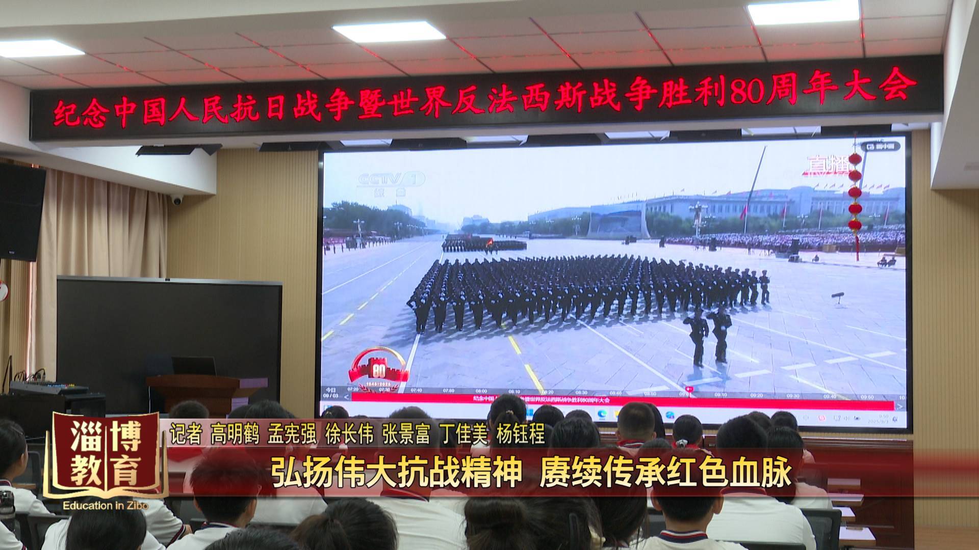 9月3日,纪念中国人民抗日战争暨世界反法西斯战争胜利80周年大会在北京天安门广场隆重举行。我市广大师生收看现场直播,感受大会盛况,传承红色血脉,凝聚爱国力量。