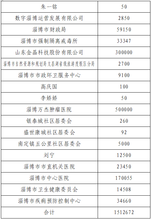 2025年8月6日,市民政局、市委社会工作部、市委市直机关工委、市总工会、市工商联、市国资委联合印发《关于开展2025年 “慈心一日捐”活动的通知》,在全市安排部署“慈心一日捐”活动。截止9月25日17时,淄博市慈善总会接收捐款4857639.4元。其中,9月18日17时至9月25日17时接收捐款1512672元,现公示如下(按捐款时间):