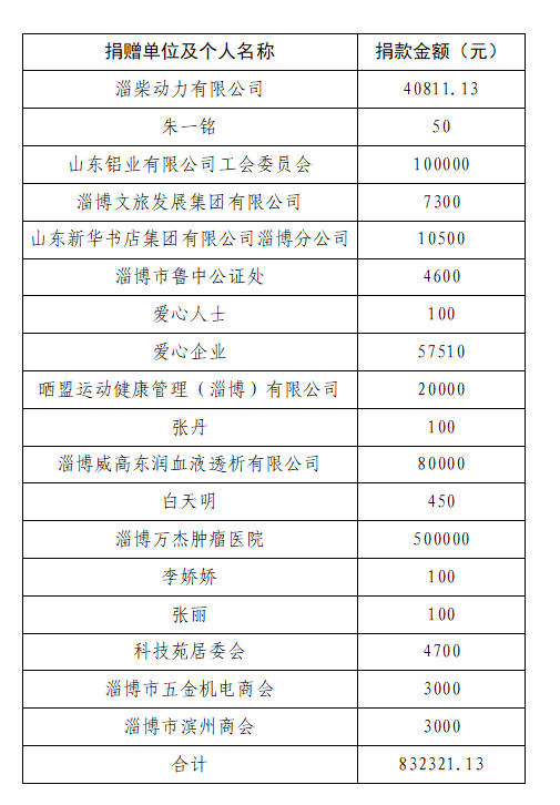 2025年8月6日,市民政局、市委社会工作部、市委市直机关工委、市总工会、市工商联、市国资委联合印发《关于开展2025年 “慈心一日捐”活动的通知》,在全市安排部署“慈心一日捐”活动。截止11月13日17时,淄博市慈善总会接收捐款11982381.71元。其中,11月6日17时至11月13日17时接收捐款832321.13元,现公示如下(按捐款时间):