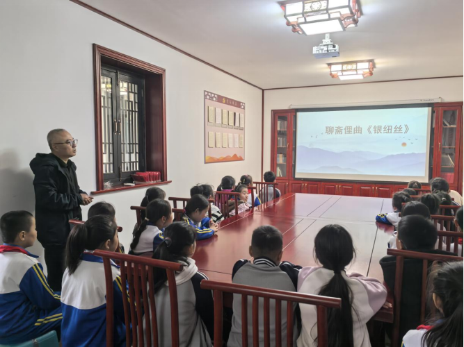面对非遗传承最大的“断层”难题,蒲建工将目光投向了青少年。2022年起,他与淄川区松龄小学合作,创办了“聊斋俚曲社团”(同时作为校级非遗传承基地)。每周授课两次,通过故事化、趣味化的教学方式,带领孩子们学唱聊斋俚曲。“孩子们刚开始接触俚曲时,会觉得这些曲子‘怪怪的’,跟他们平时听的流行歌曲很不一样。”蒲建工笑着说。为此,他摸索出了一套适合青少年的教学方法,通过讲故事、做游戏等互动方式,激发他们的学习兴趣。