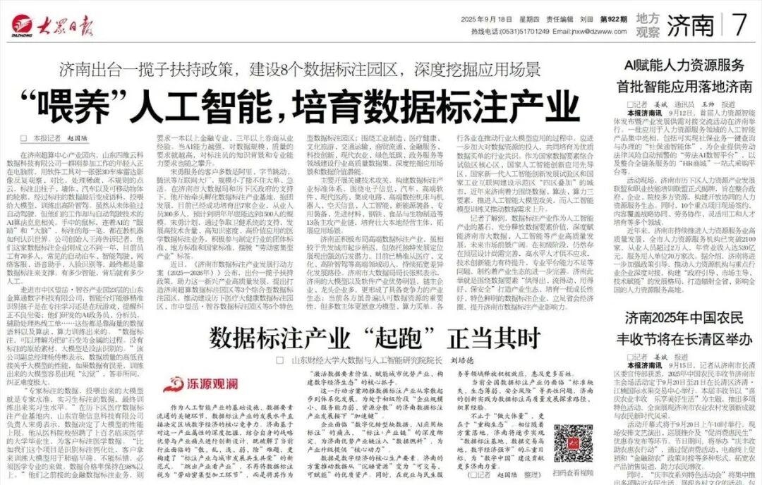 近日,《济南市数据标注产业发展行动方案(2025—2026年)》公布,出台一揽子扶持政策,助力这一新兴产业高质量发展,提出打造济南超算数据标注园区等3个综合型数据标注园区,推动建设历下医疗大健康数据标注园区、市中望岳·智谷数据标注园区等;围绕工业制造、医疗健康、文化旅游、交通运输、商贸流通、金融服务、科技创新、现代农业、绿色低碳、政务服务等领域建设行业高质量数据集,深度挖掘应用场景和数据价值潜能。