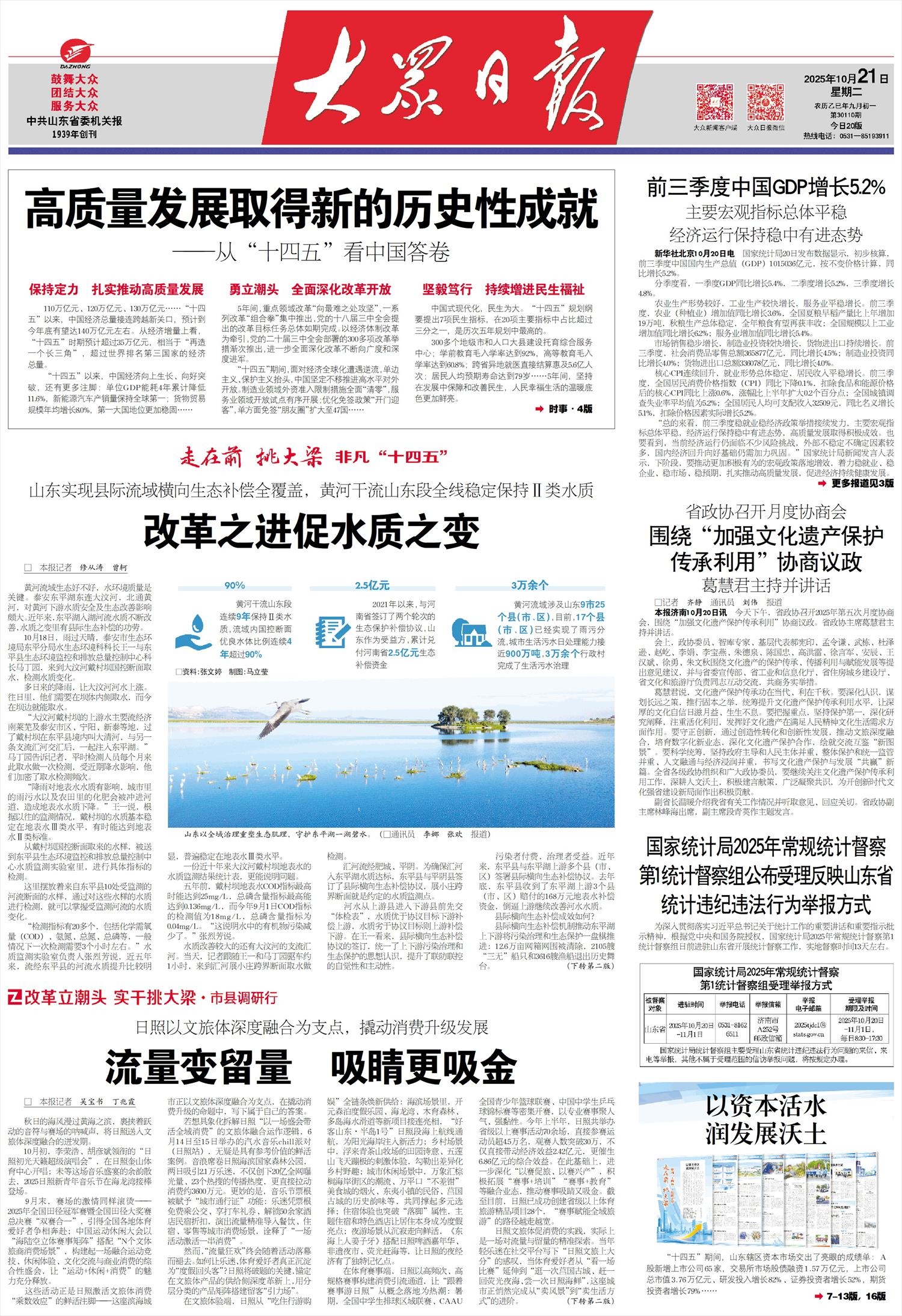山东实现县际流域横向生态补偿全覆盖,黄河干流山东段全线稳定保持Ⅱ类水质 改革之进促水质之变