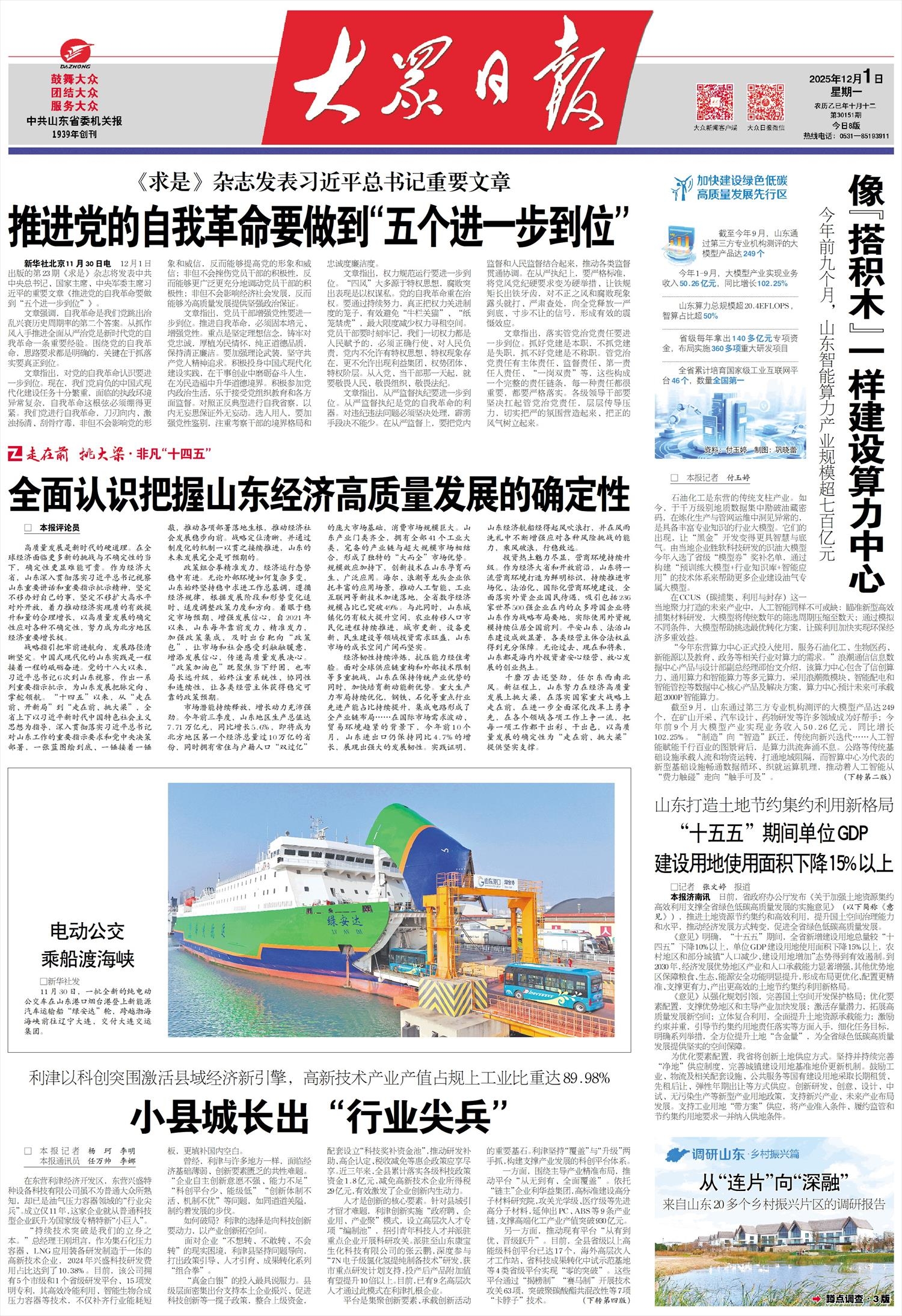 经济韧性持续淬炼,抗压能力经住考验。面对全球供应链重构和外部技术限制等多重挑战,山东在保持传统产业优势的同时,加快培育新动能新优势。重大生产力布局持续优化,钢铁、石化等重点行业先进产能占比持续提升,集成电路形成了全产业链布局……在国际市场需求波动、贸易环境趋紧的背景下,今年前10个月,山东进出口仍保持同比4.7%的增长,展现出强大的发展韧性。实践证明,山东经济航船经得起风吹浪打,并在风雨洗礼中不断增强应对各种风险挑战的能力,乘风破浪,行稳致远。